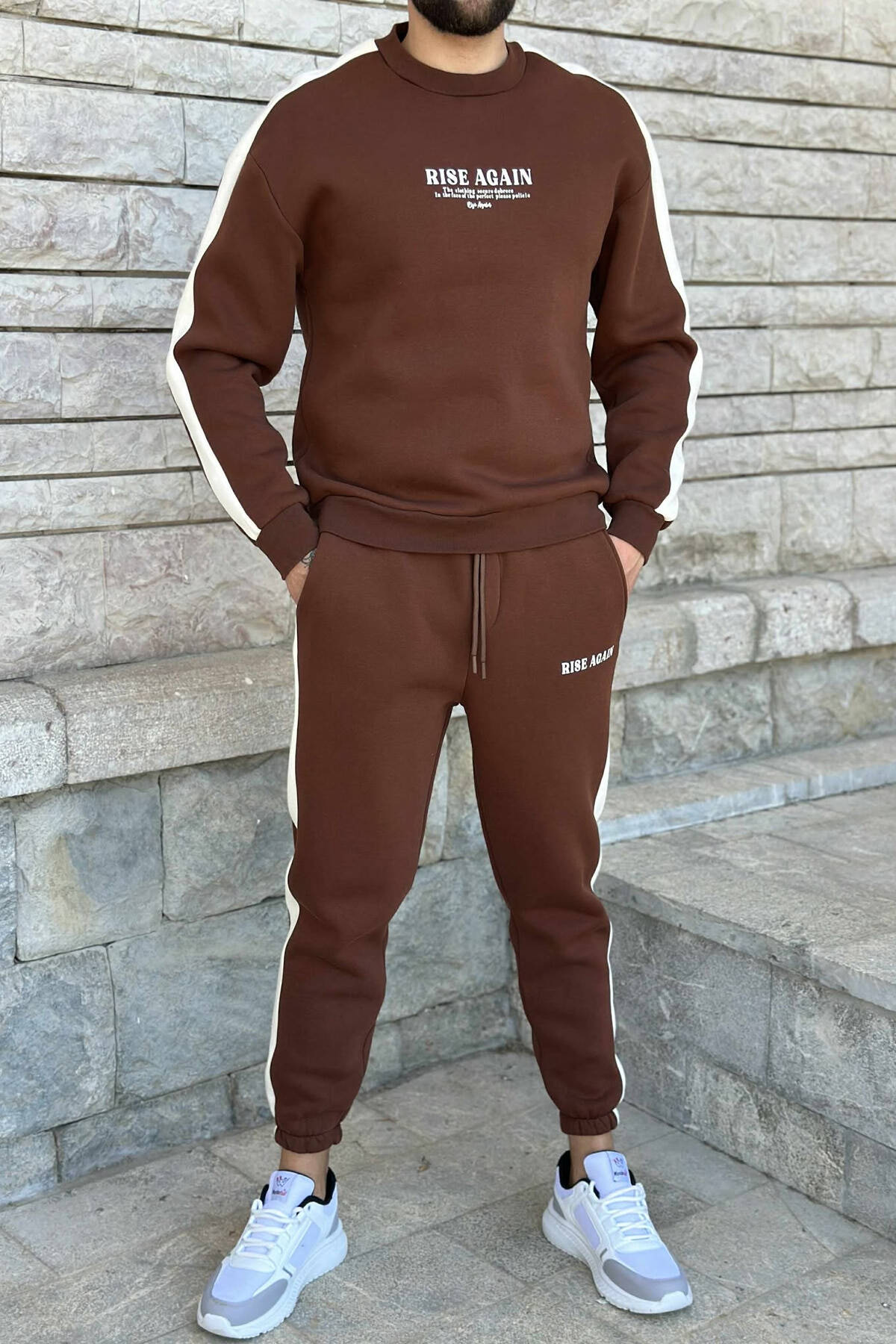 FRONT WRITTINGS SWEATSHIRT+JOGGERS FLUFFY MEN SET BROWN/KAFE