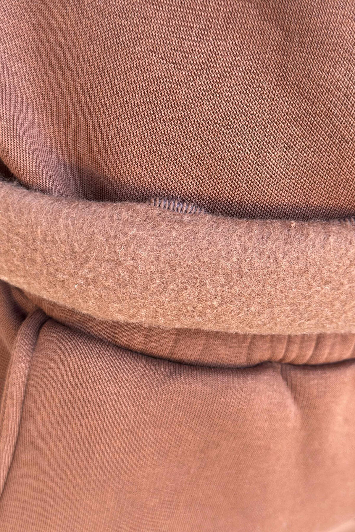 ONE COLOR FLUFFY BACK DESIGN HOODIE+JOGGERS MEN SET BROWN/KAFE