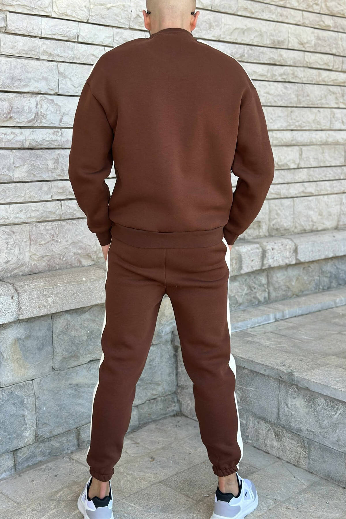 ROUND NECK SWEATSHIRT+JOGGERS FLUFFY MEN SET DARK BROWN/KAE