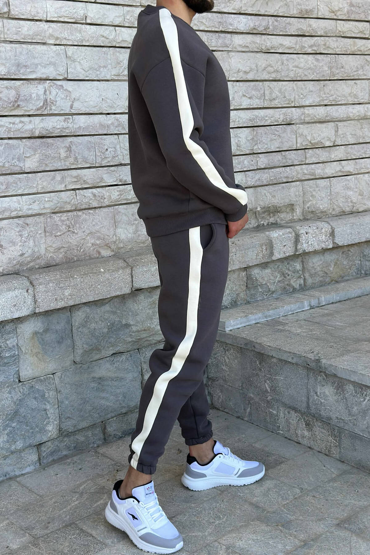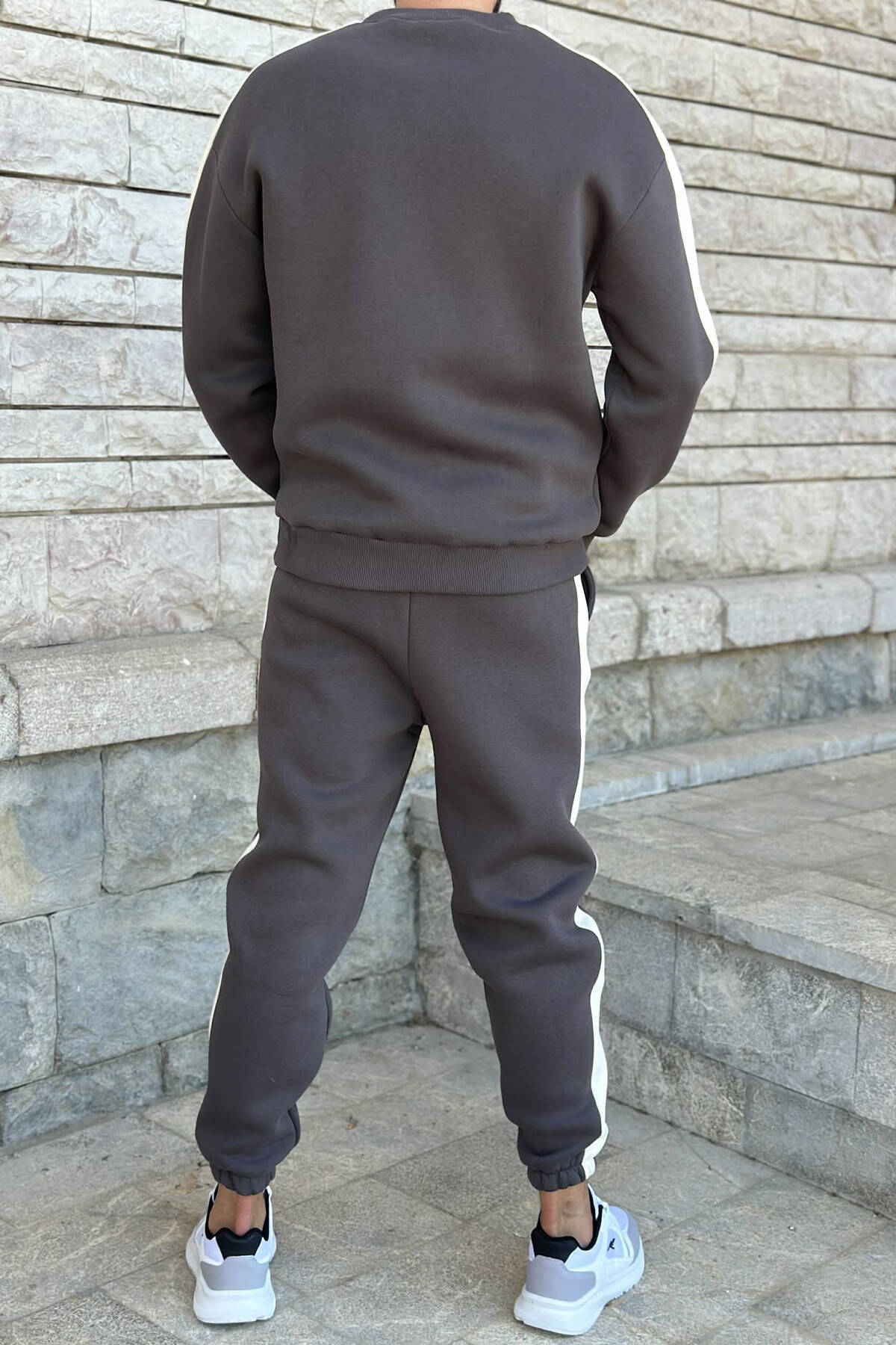 ROUND NECK SWEATSHIRT+JOGGERS FLUFFY MEN SET DARK BROWN/KAE