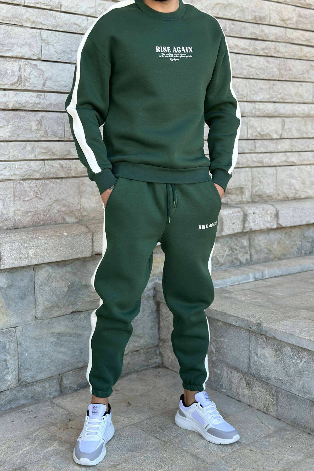 FRONT WRITTINGS SWEATSHIRT+JOGGERS FLUFFY MEN SET GREEN/JESHILE