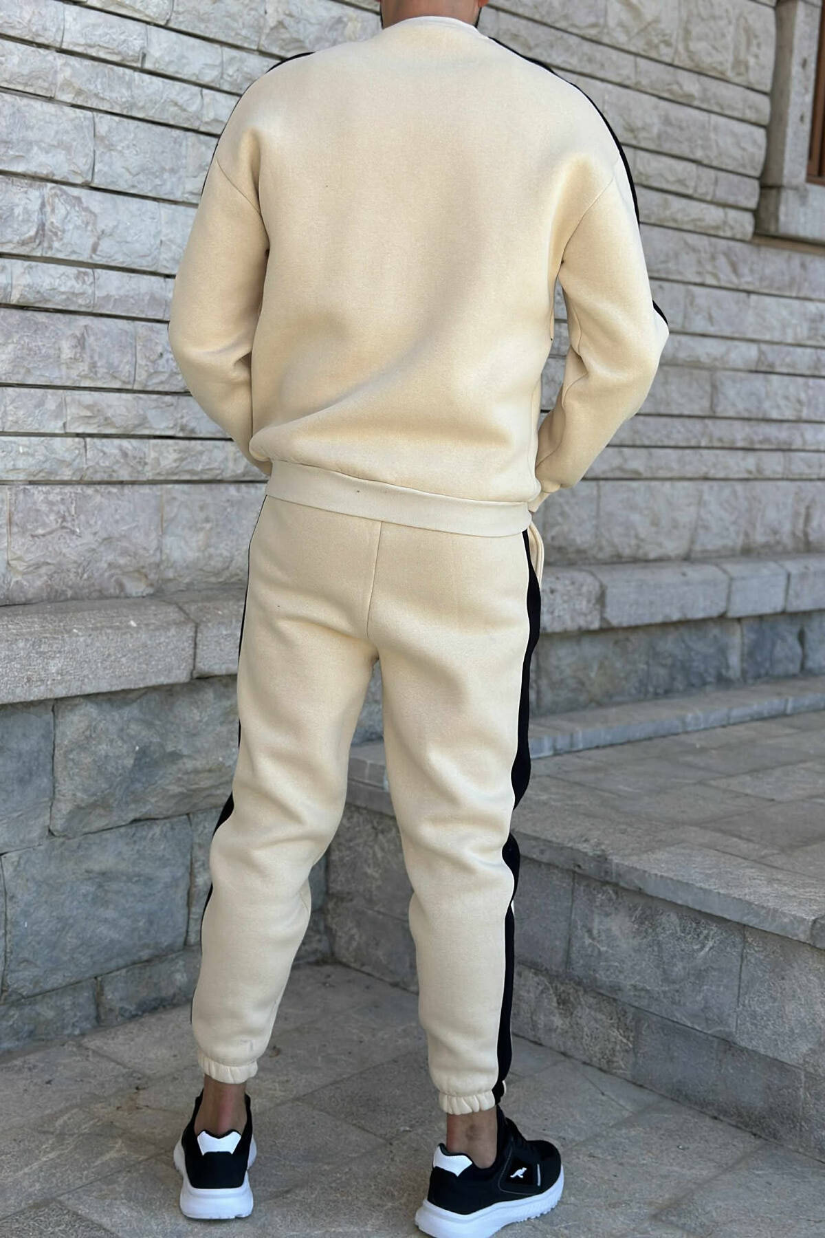 ROUND NECK SWEATSHIRT+JOGGERS FLUFFY MEN SET LIGHT BEIGE/BZHZB