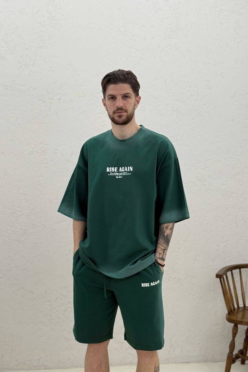 ONE COLOR WRITTINGS T-SHIRT + SHORTS MEN SET GREEN/JESHILE