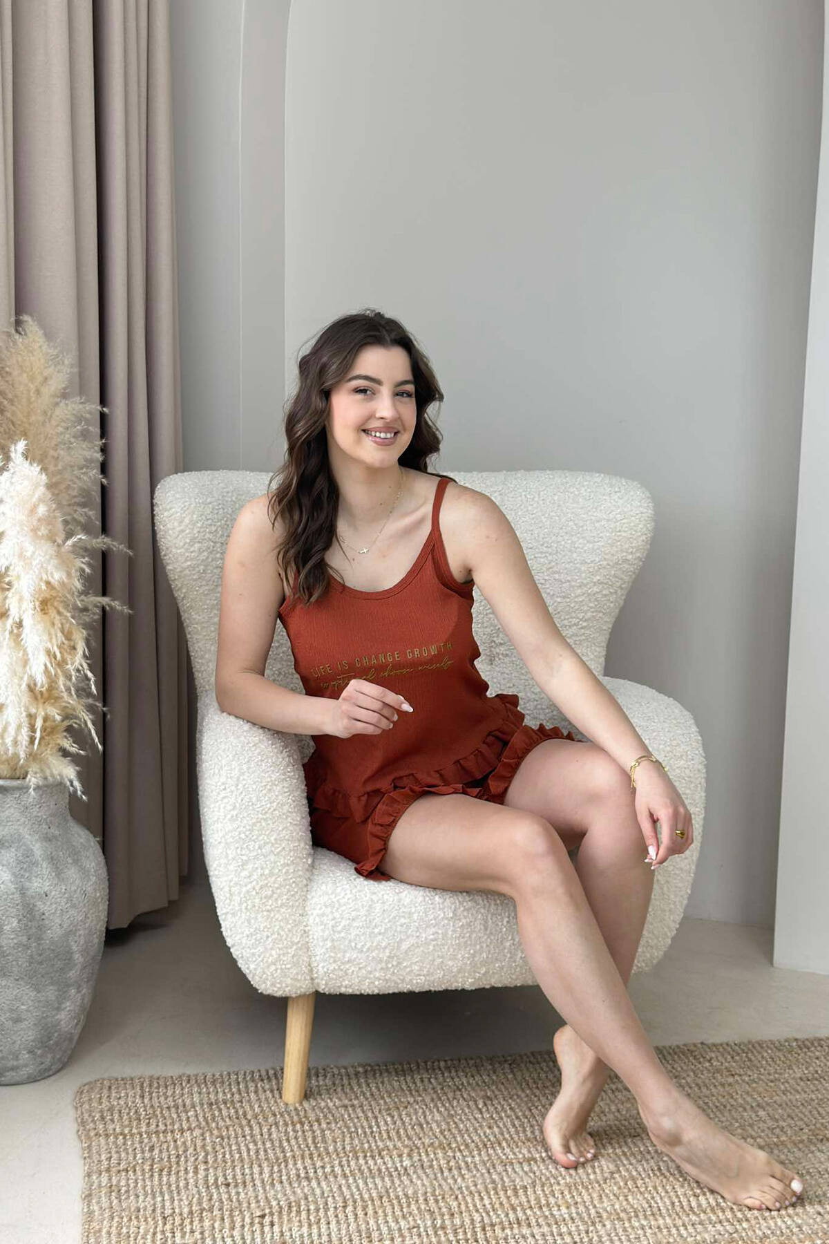 FRONT WRITTINGS TANK TOP+SHORTS WOMEN PYJAMAS BRICK/TULLE