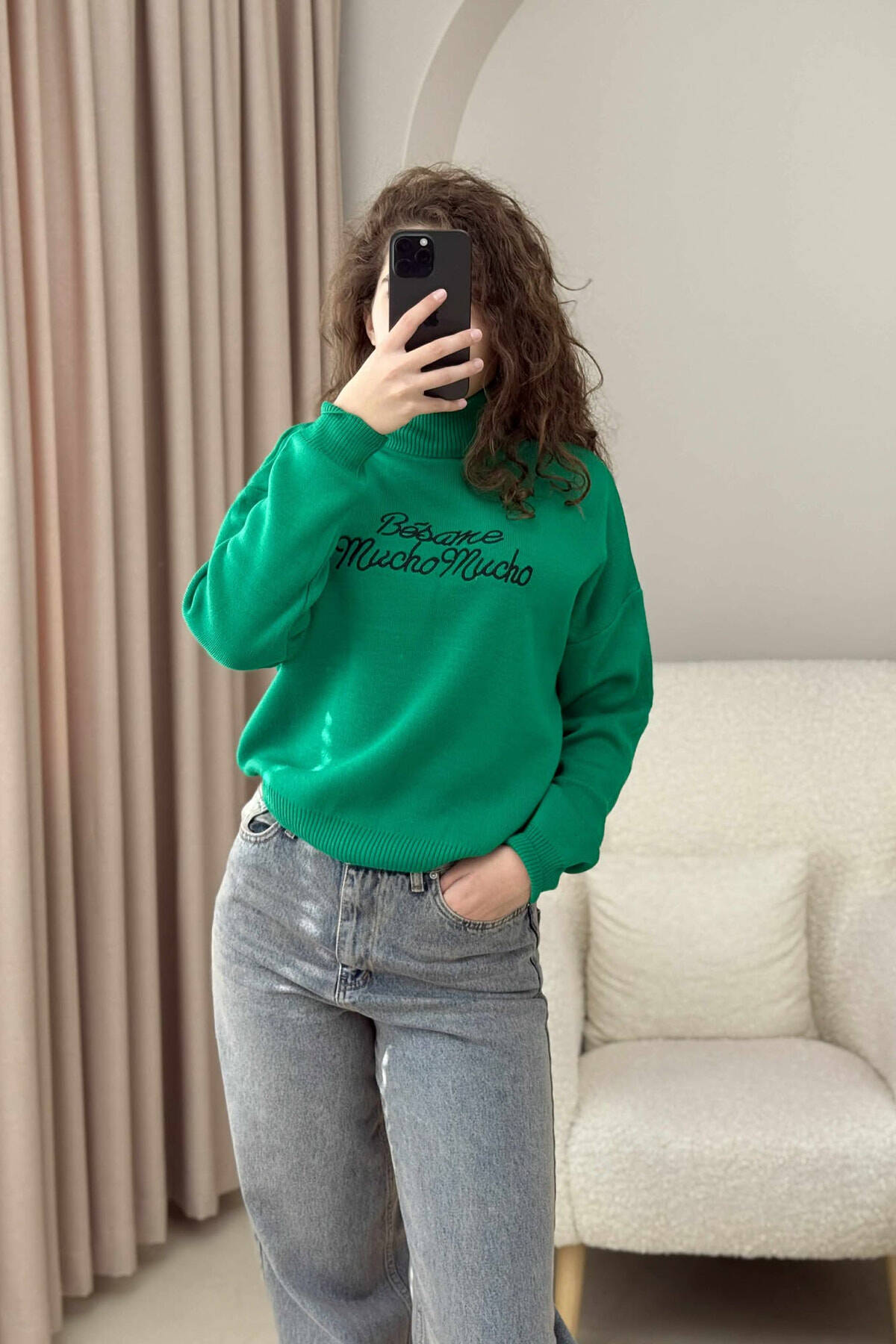 FRONT WRITTINGS TURTLE NECK WOMEN SWEATER DARK GREEN/JEE