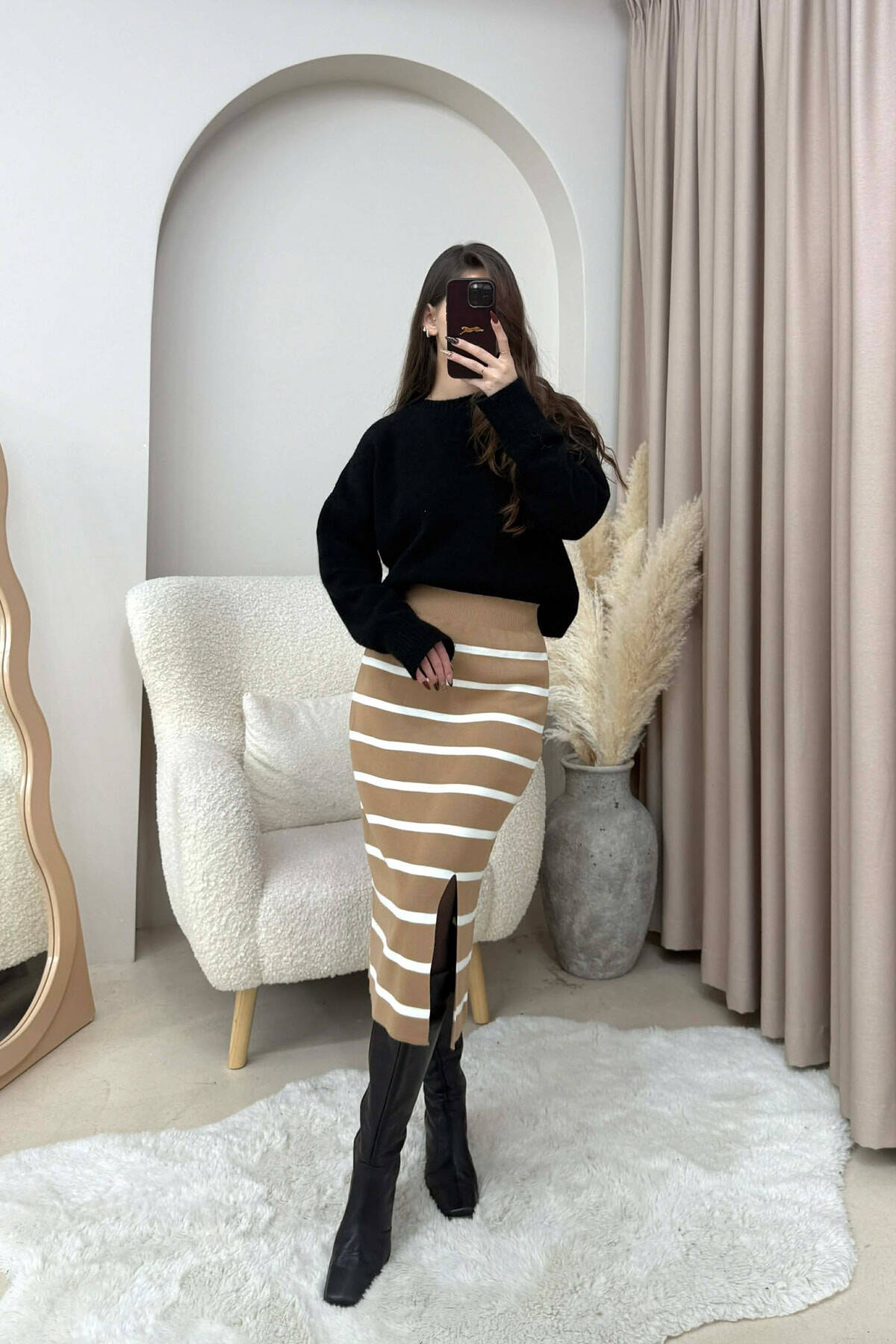 FUND I GJATË I THURRUR ME VIJA PËR FEMRA NË NGJYRË KAFE