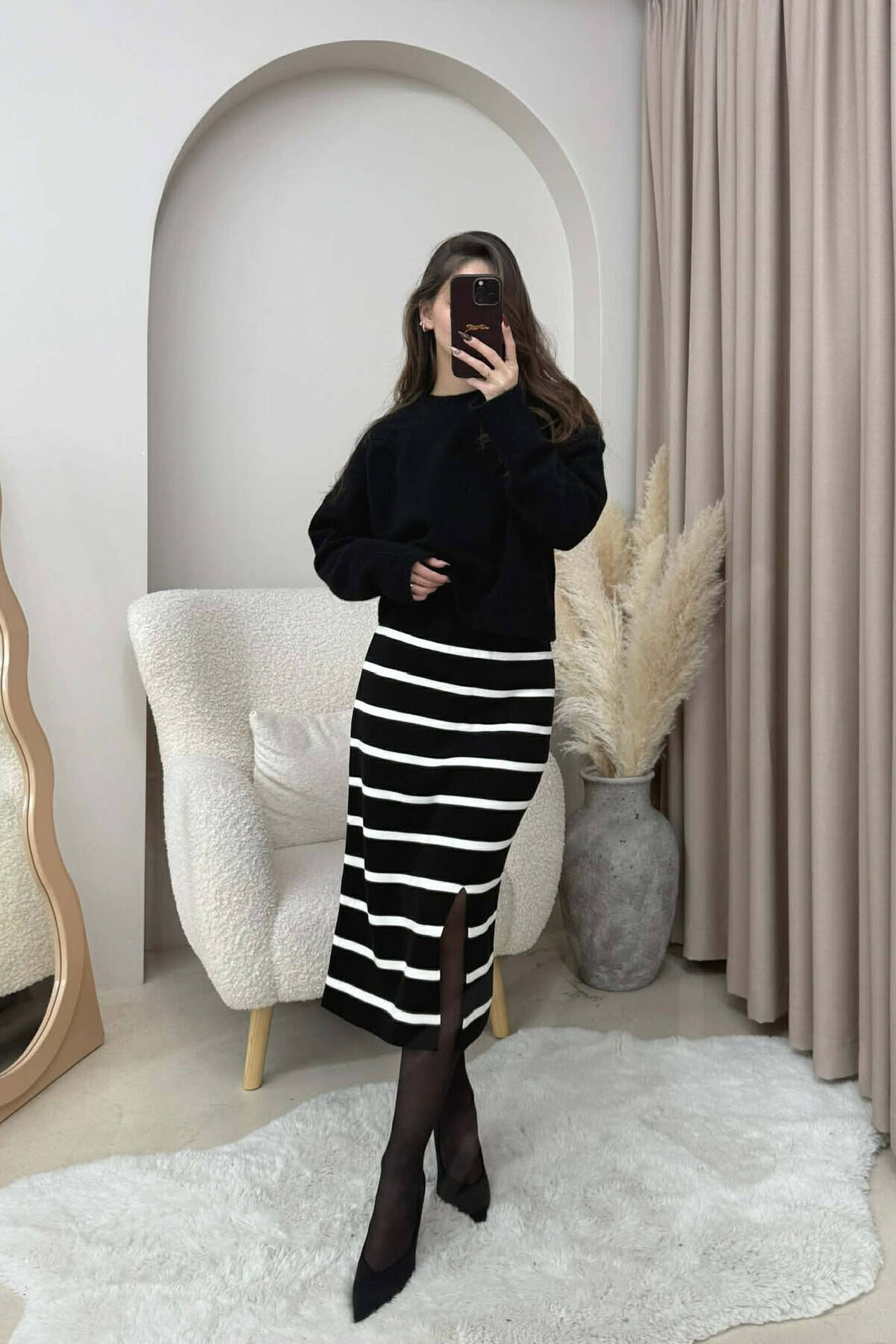 FUND I GJATË I THURRUR ME VIJA PËR FEMRA NË NGJYRË TË ZEZË