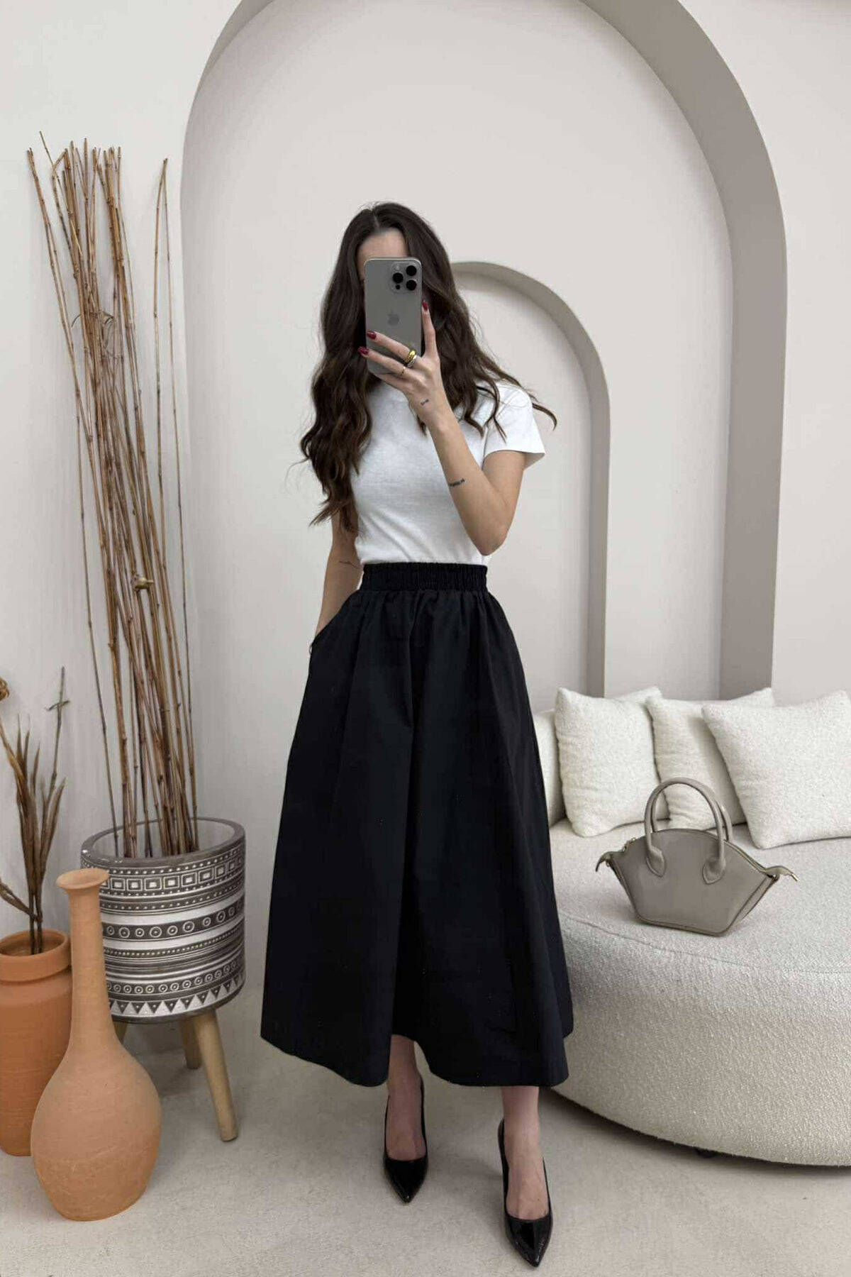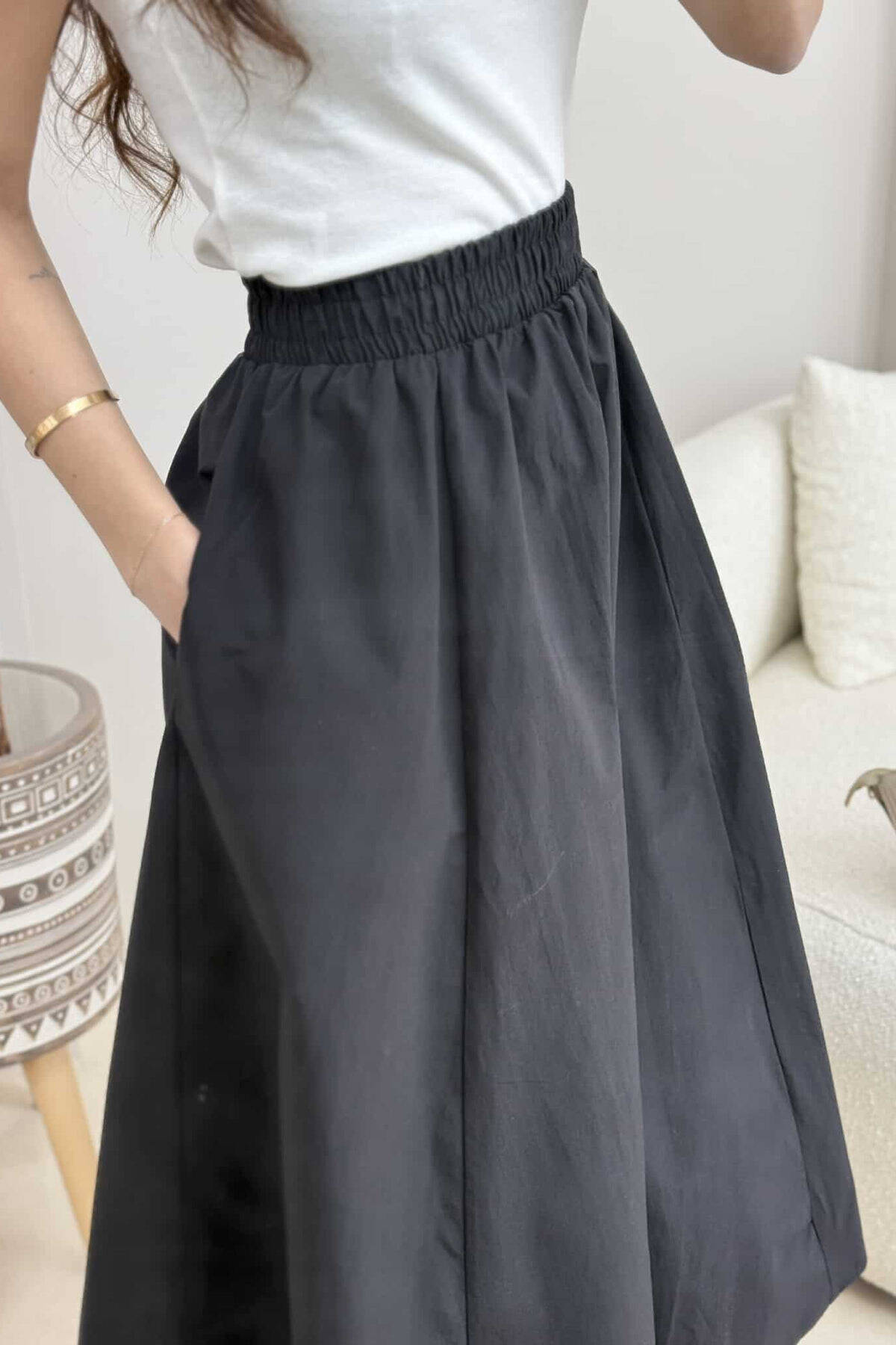 FRONT CUT SILVER DETAILS WOMEN SKIRT BLACK/ E ZEZE
