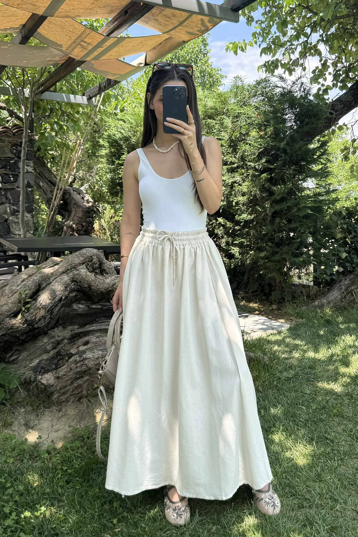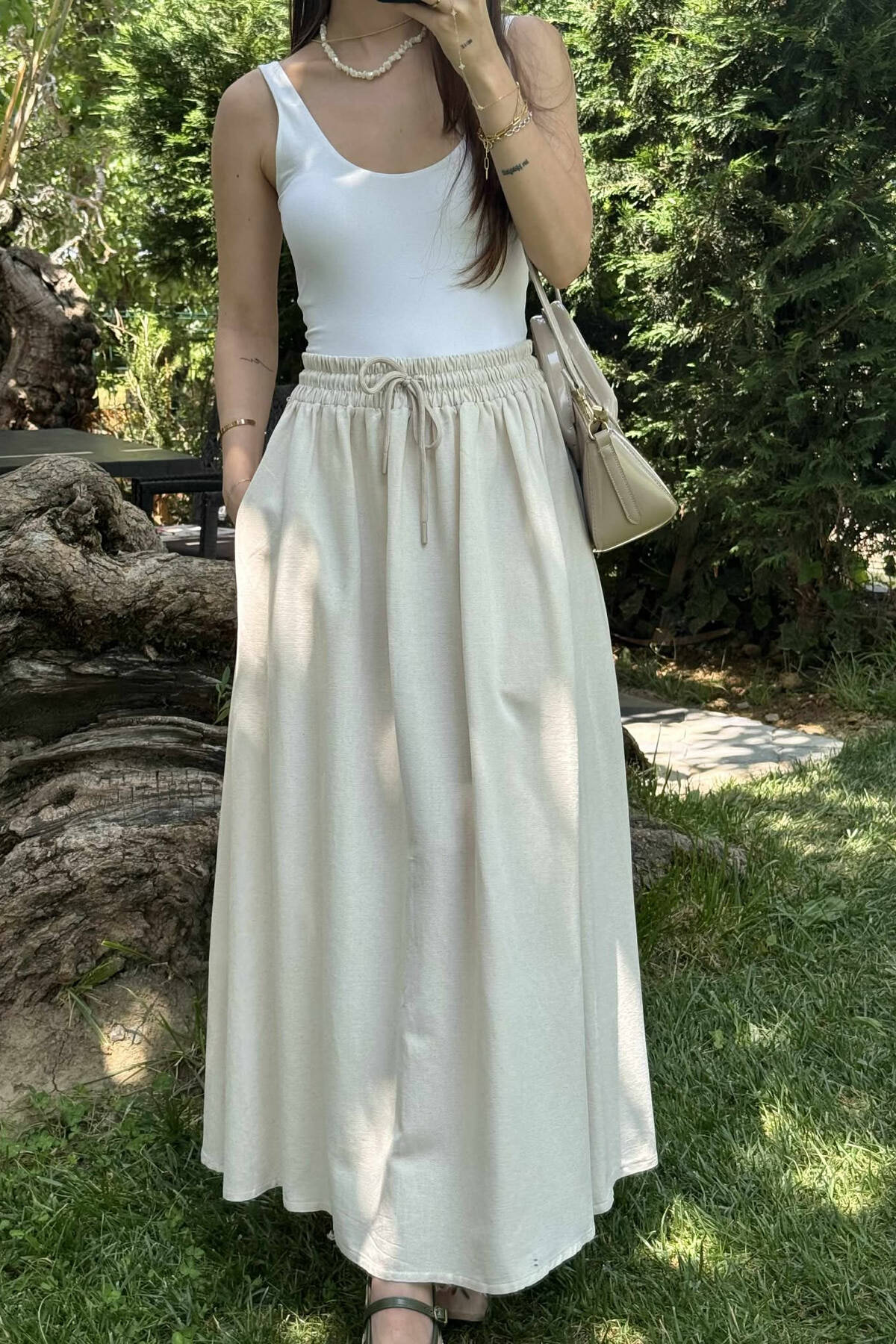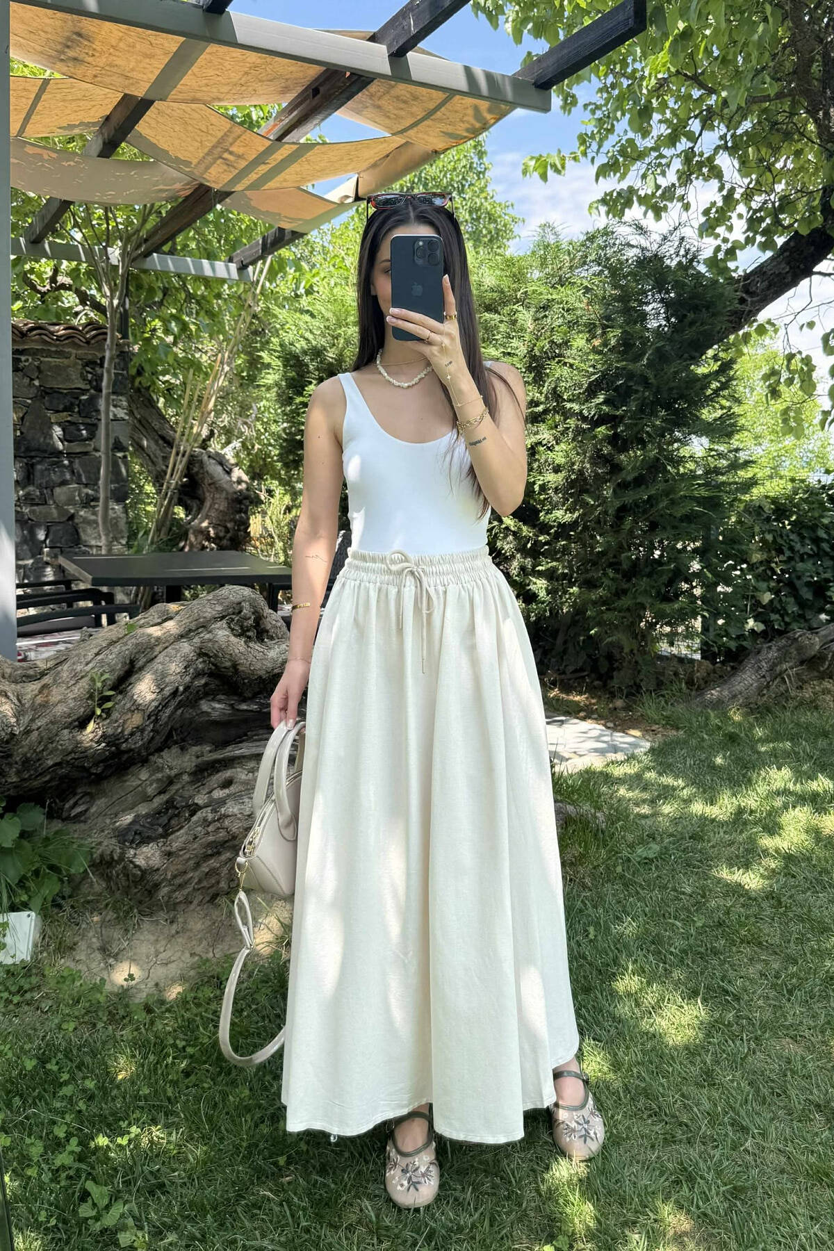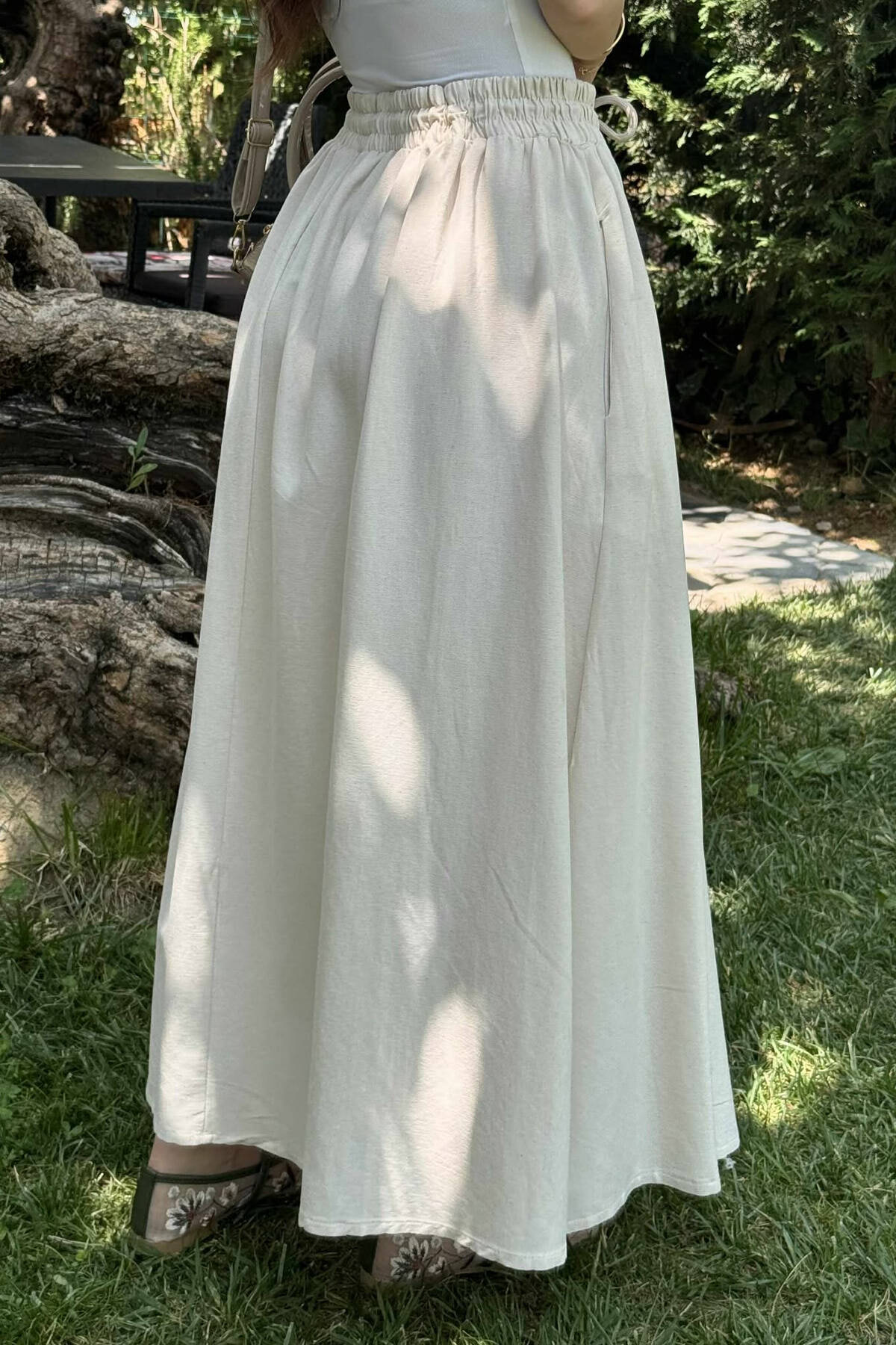 FUND NJË NGJYRËSH I GJATË ME BEL ELASTIK PËR FEMRA NË NGJYRËN KREM