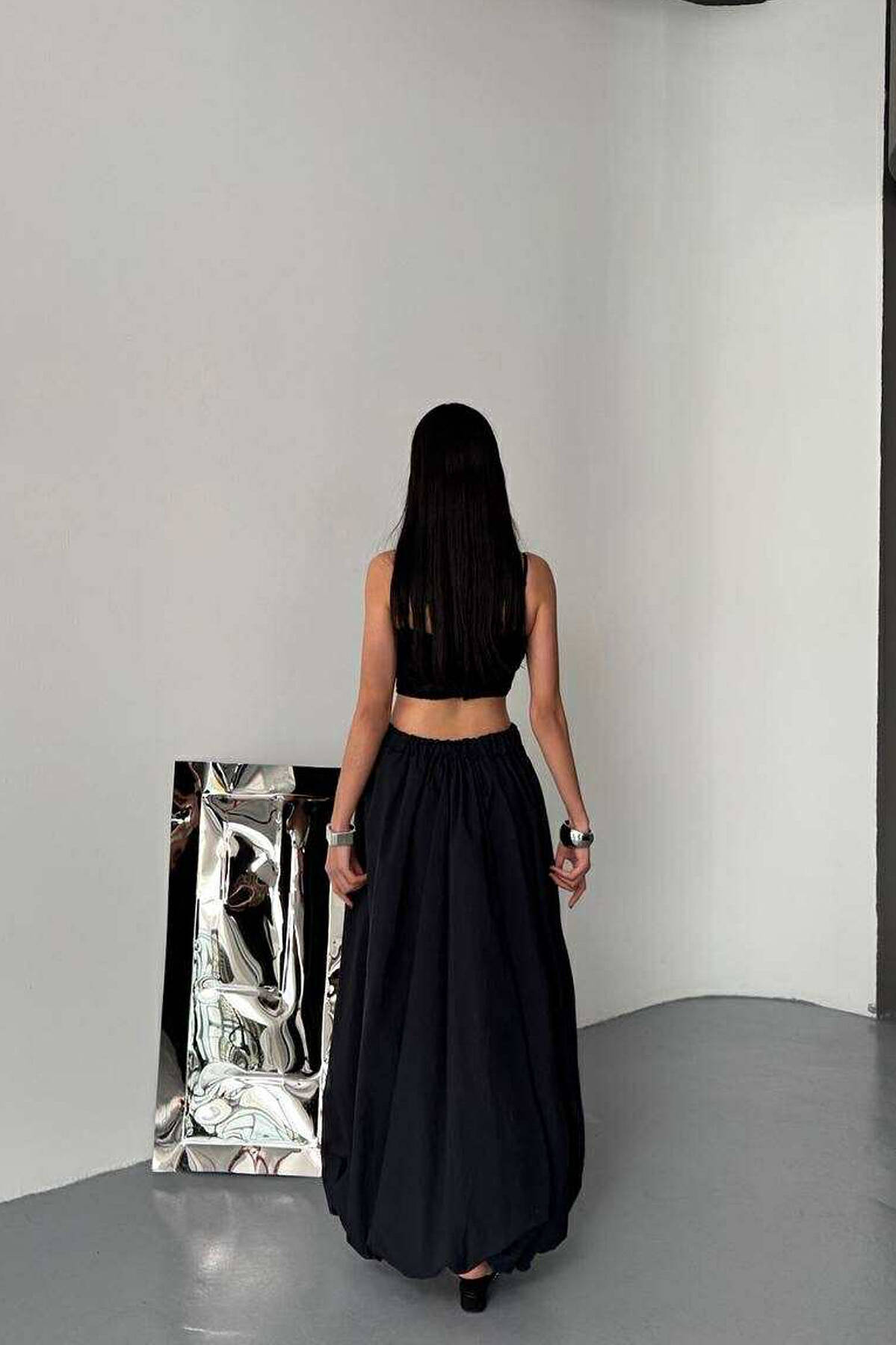 FUND I GJATË NJË NGJYRËSH ELASTIK TE BELI PËR FEMRA NË NGJYRËN E ZEZË