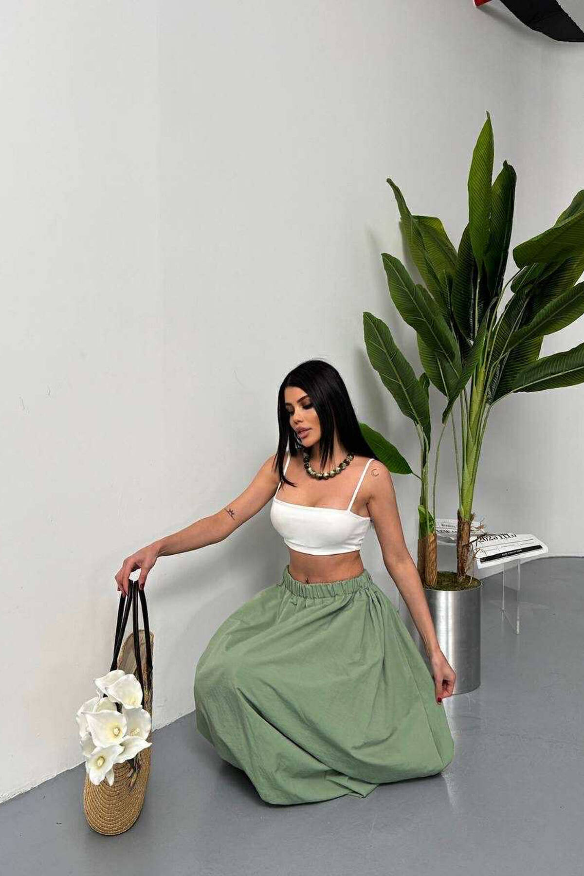 FUND I GJATË NJË NGJYRËSH ELASTIK TE BELI PËR FEMRA NË NGJYRËN MENTE