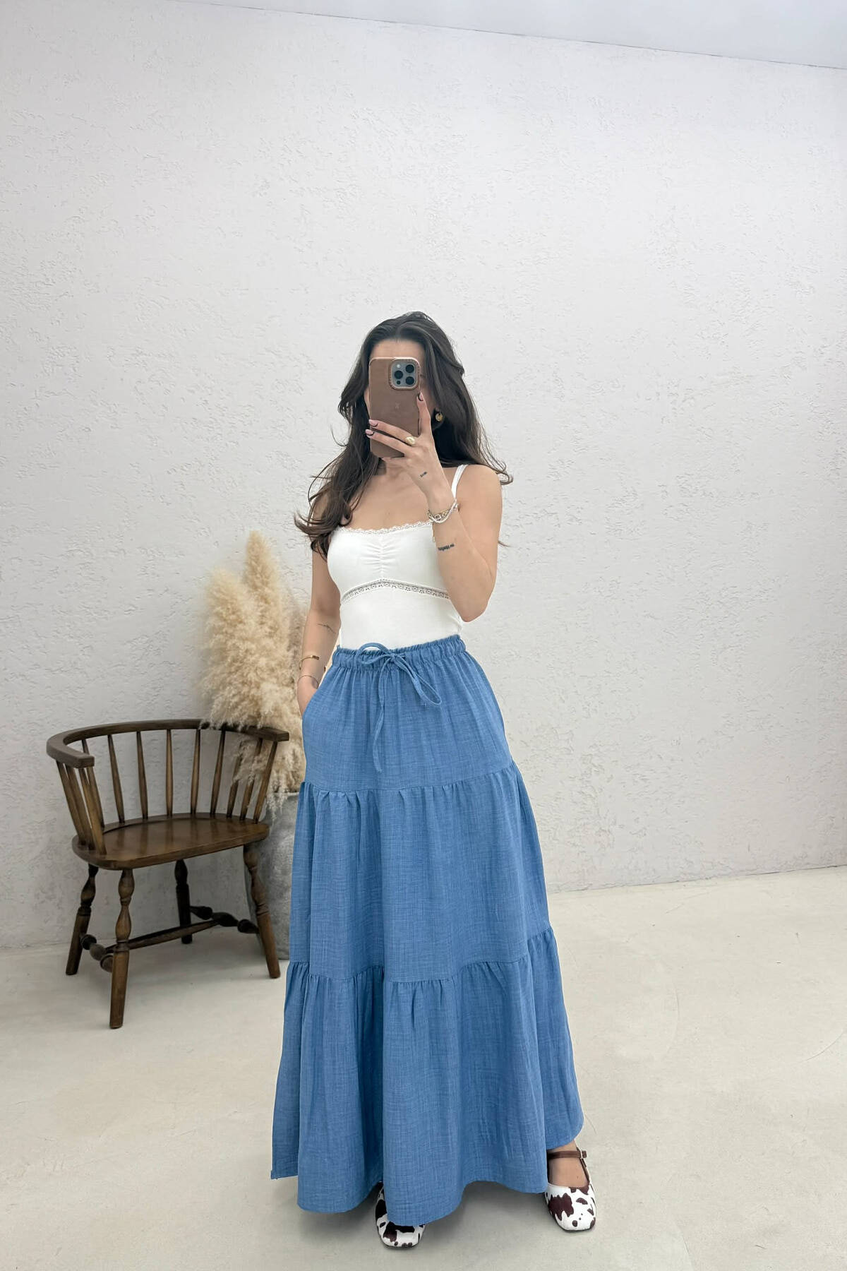 FUND I GJATE NJE NGJYRESH ME BEL GJYSEM ELASTIK PER FEMRA NE NGJYRE BLU TE ZBARDHUR