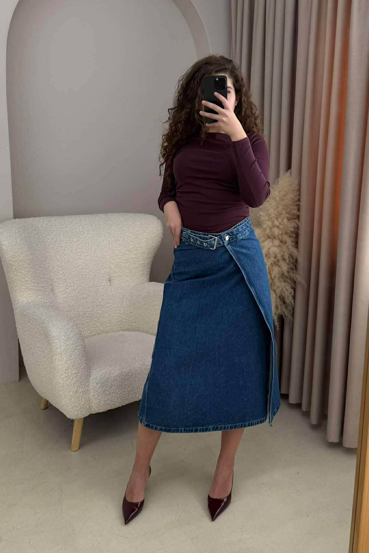FUND I GJATË XHINS ME DETAJIN E RRIPIT PËR FEMRA NË NGJYRË BLU