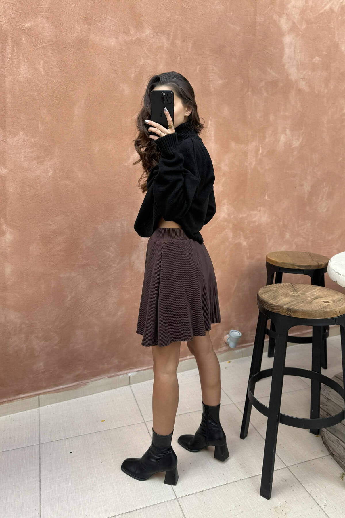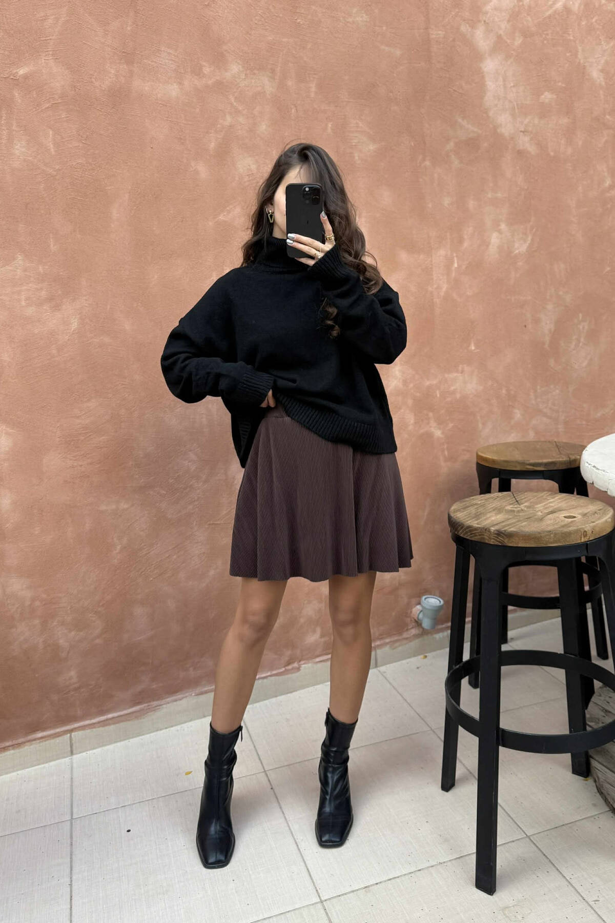 FUND I GJATË NJË NGJYRËSH PËR FEMRA NË NGJYRË KAFE
