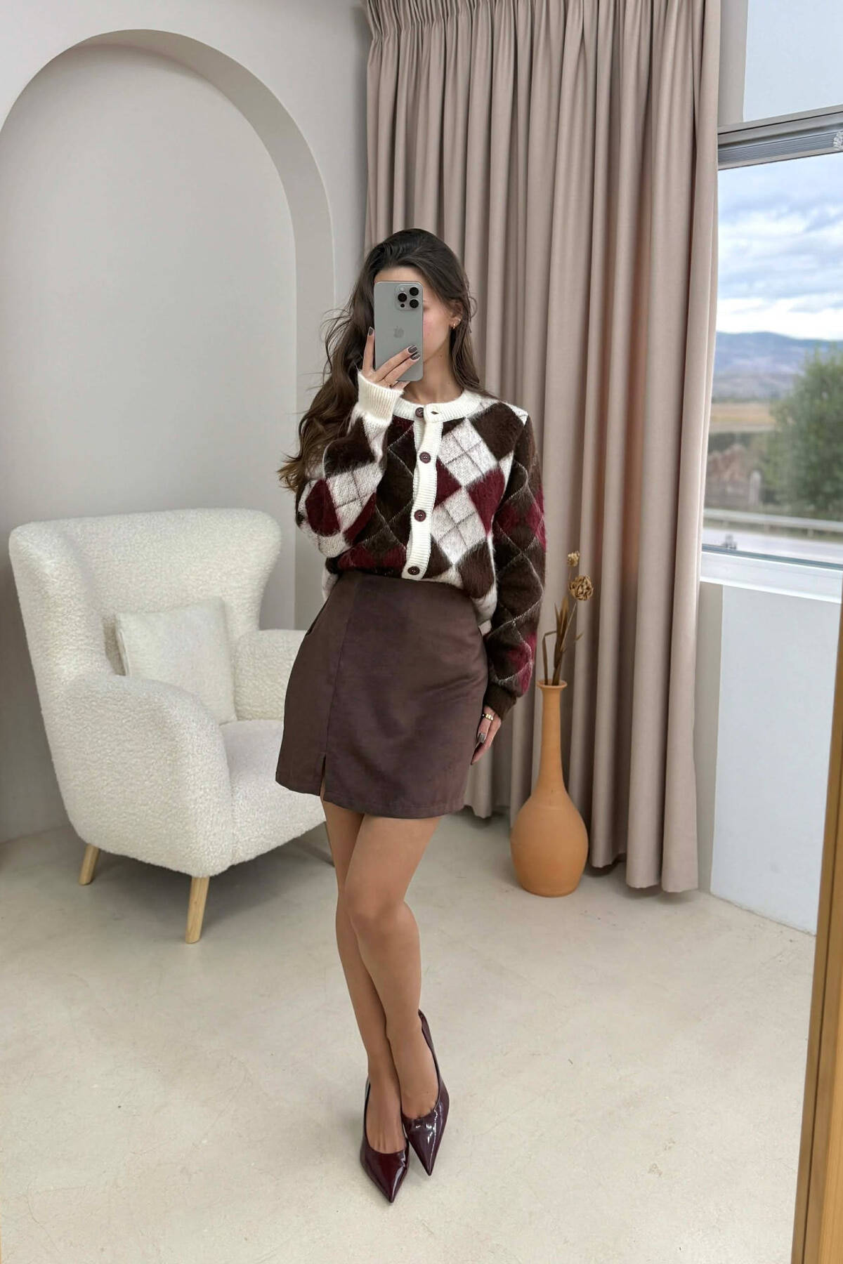 FUND KAMOSHI NJE NGJYRESH ME DETAJIN E RRIPIT PER FEMRA NE NGJYRE KAFE