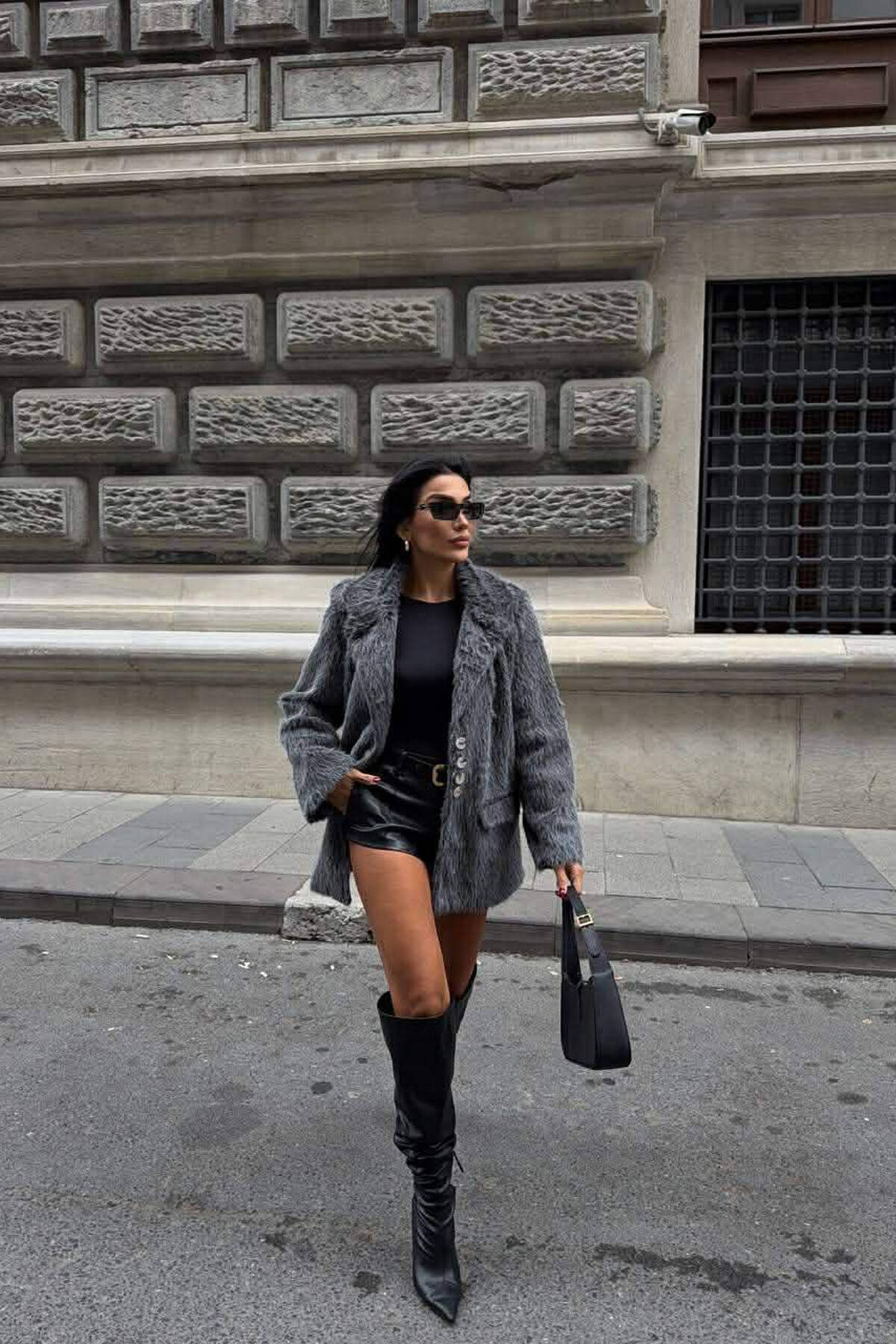 FUR DESIGN BUTTONED WOMAN JACKET GREY/GRI