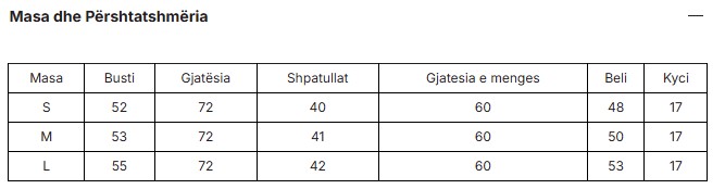 Size chart