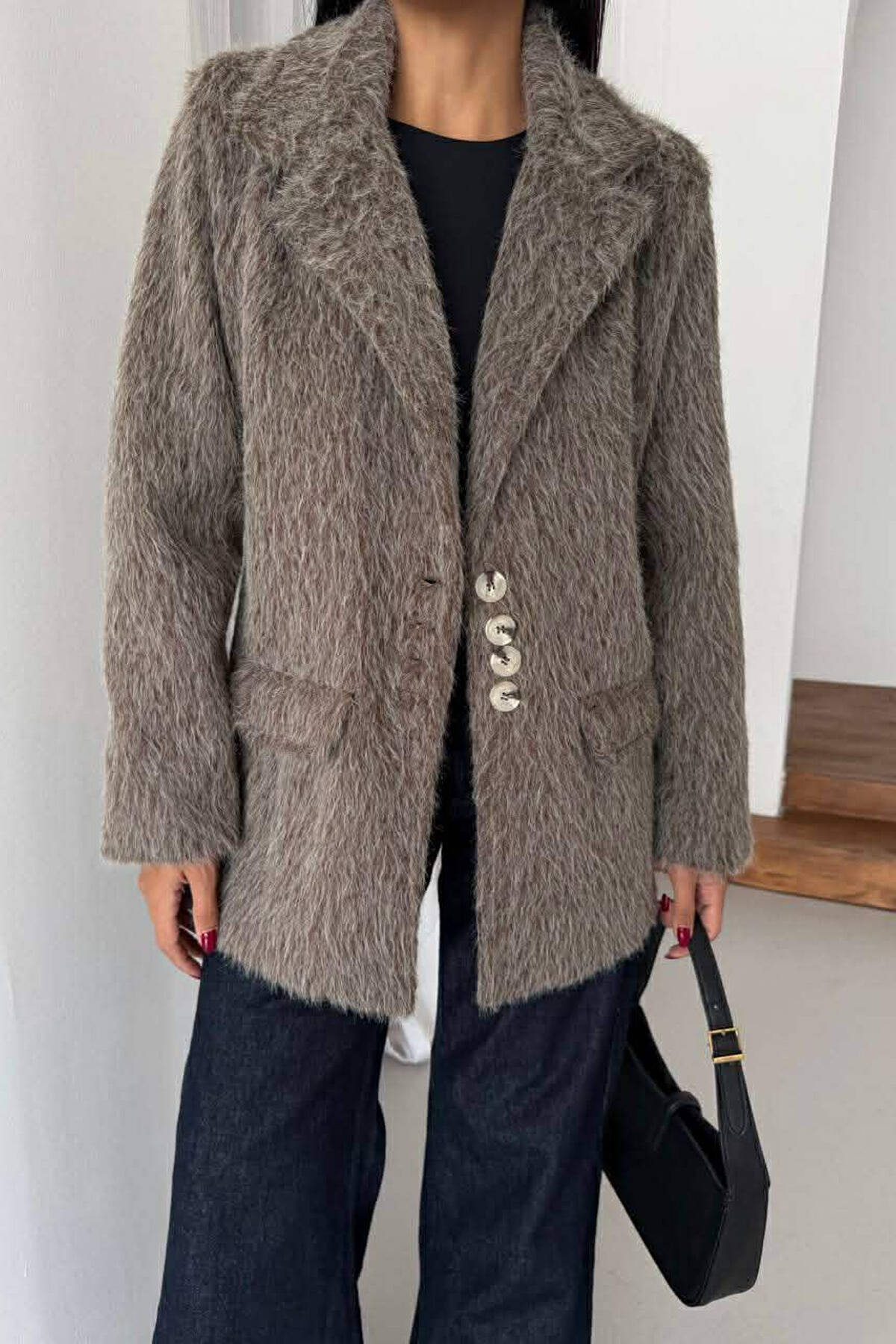 FUR DESIGN BUTTONED WOMAN JACKET LIGHT BROWN/KAZB