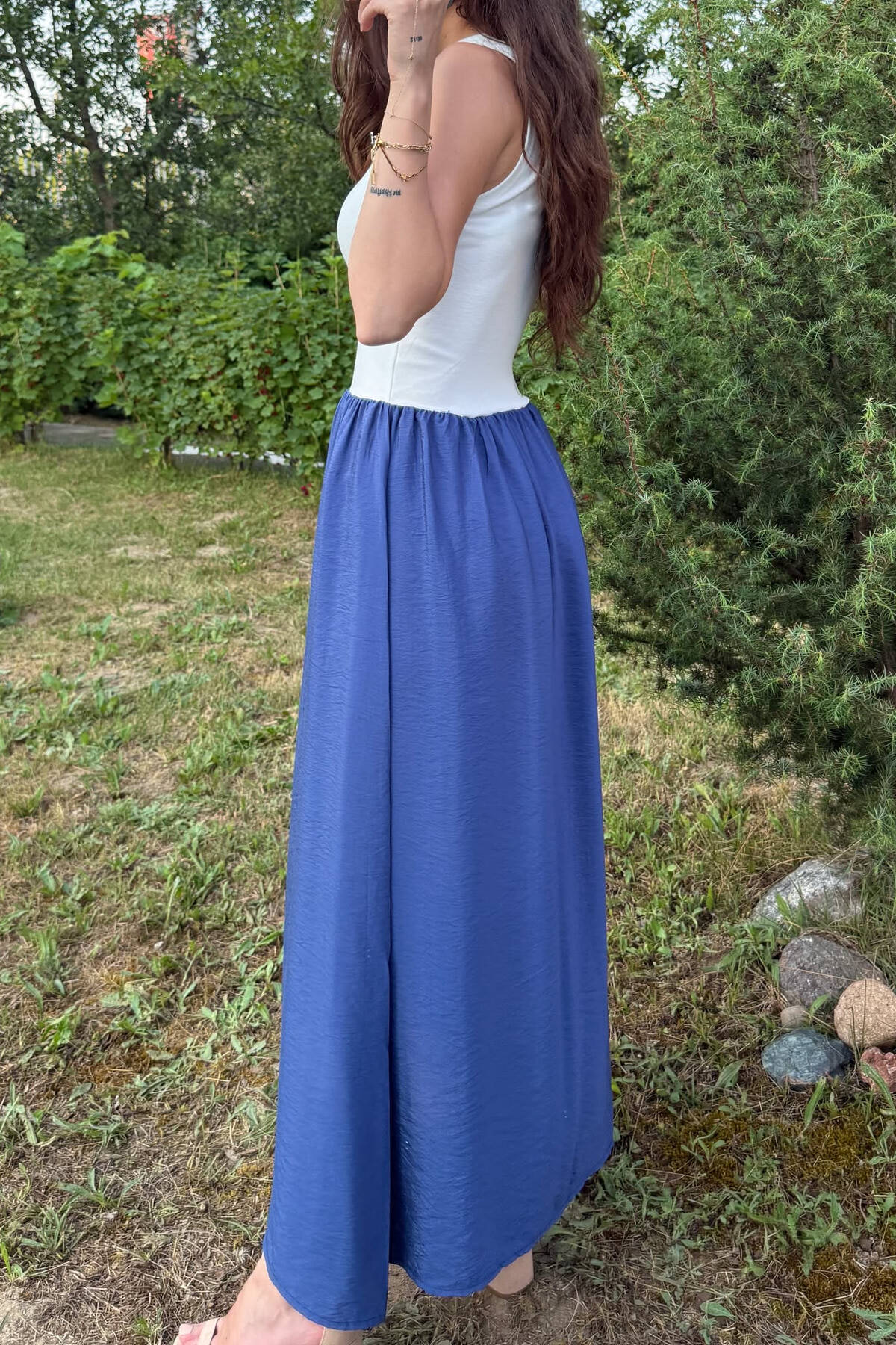 FUSTAN DY NGJYRËSH PËR FEMRA NË NGJYRËN E BARDHË+BLU