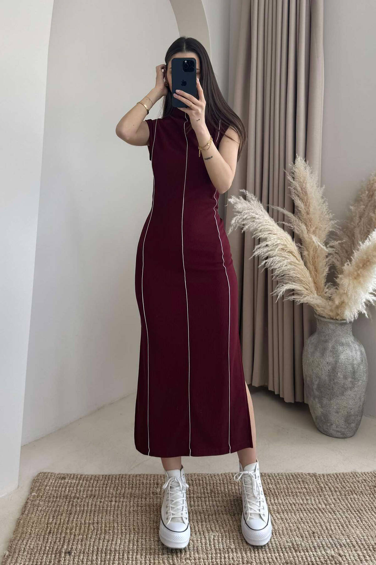 ONE COLOR LONG SLEEVE WOMEN DRESS BURGUNDY/VISHNJE