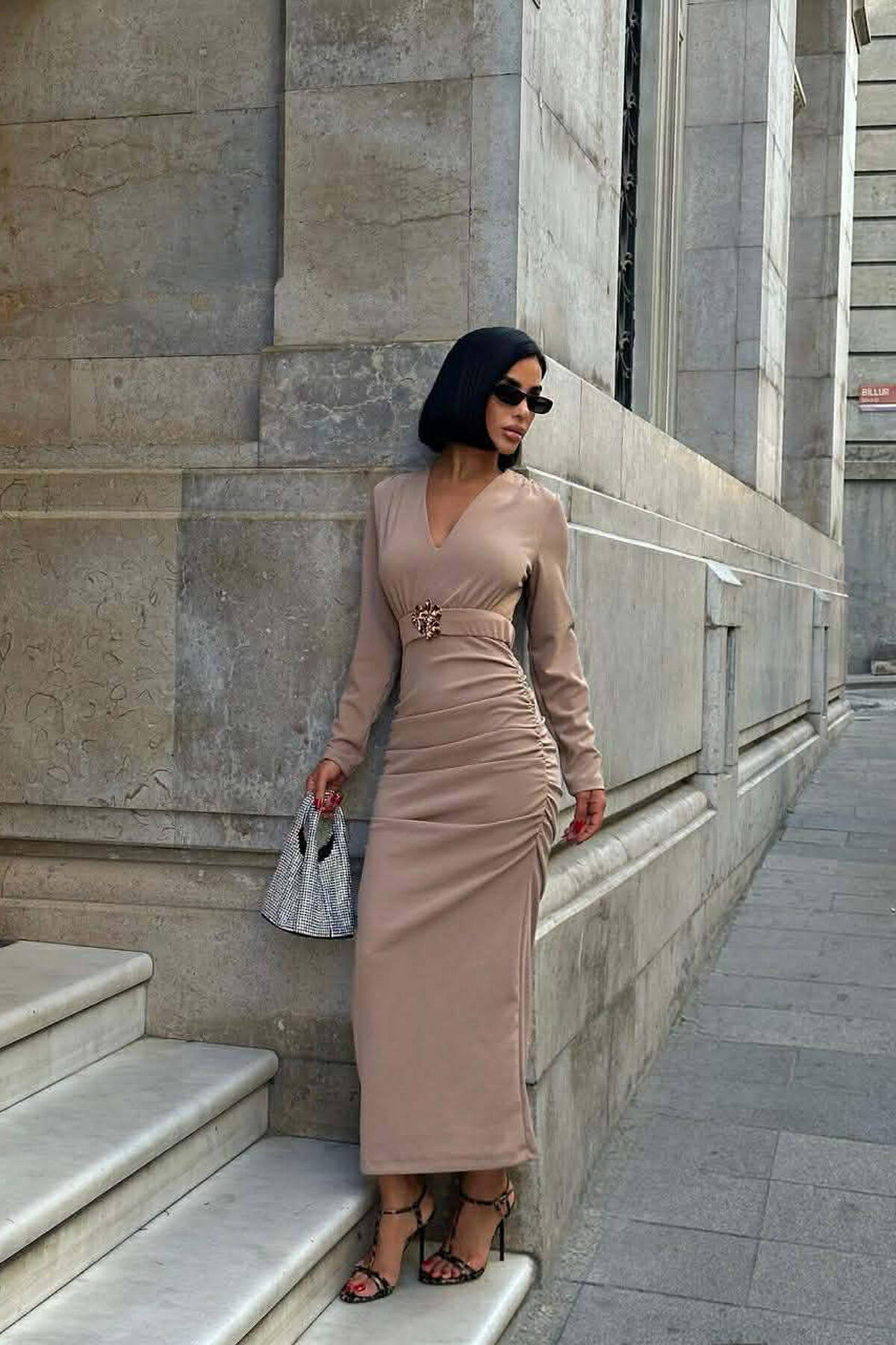 FUSTAN I GJATE NJE NGJYRESH ME JAKE V DHE RRIP ME DATAJ GOLD PER FEMRA NE NGJYRE BEZHE