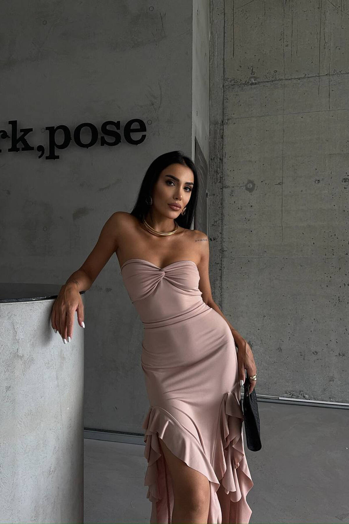 FUSTAN ME MENGE TE GJATA DHE ME DETAJIN E RRIPIT PER FEMRA NE NGJYRE KAFE