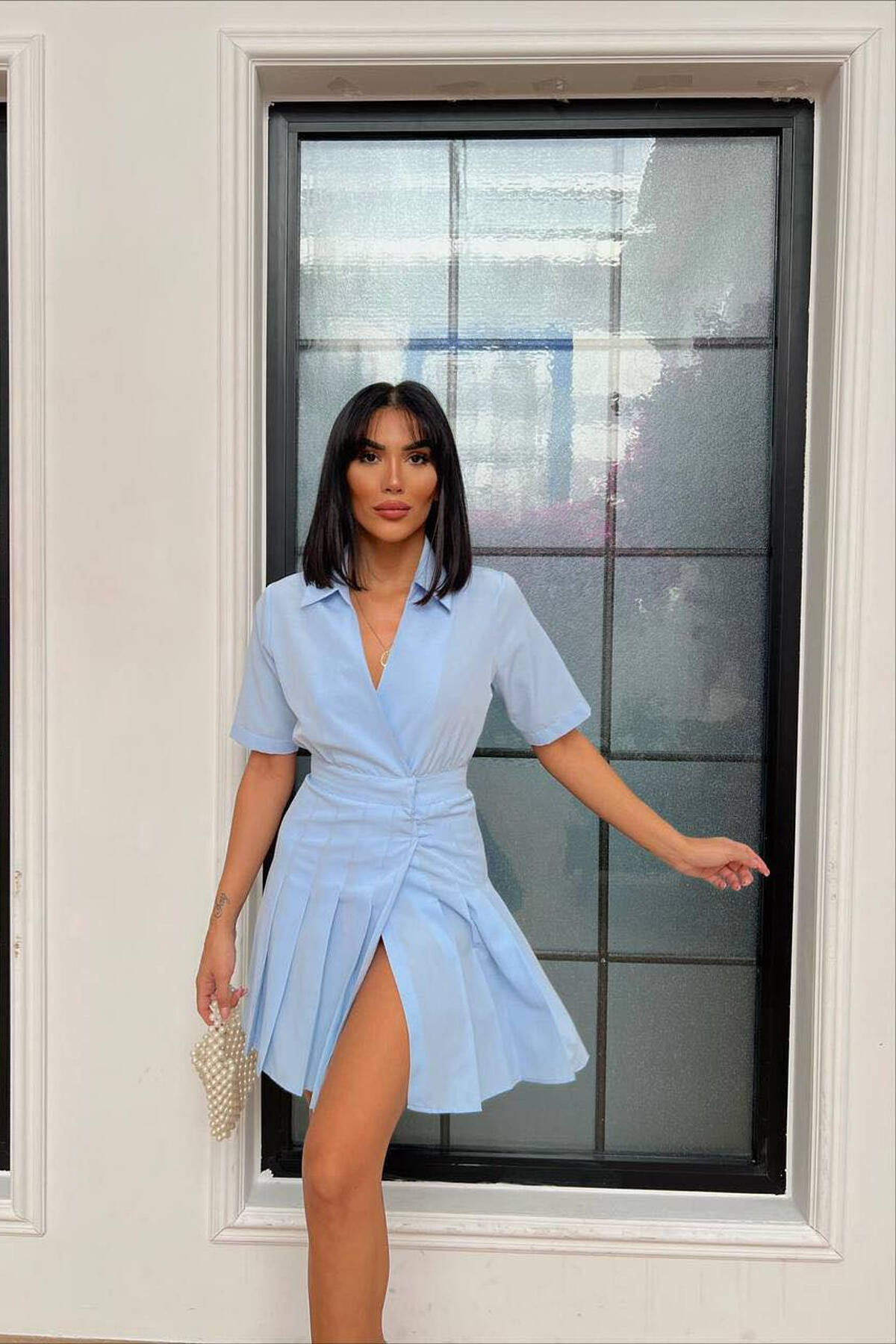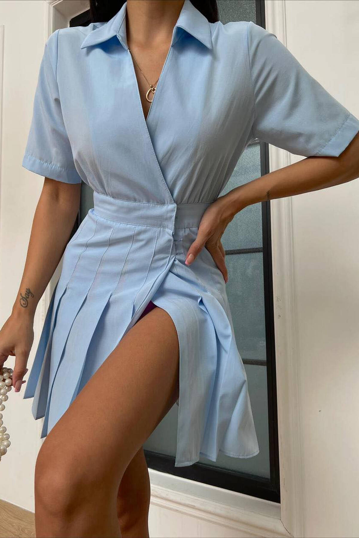 Fustan i shkurter me jake polo per femra ne ngjyren bojeqielli