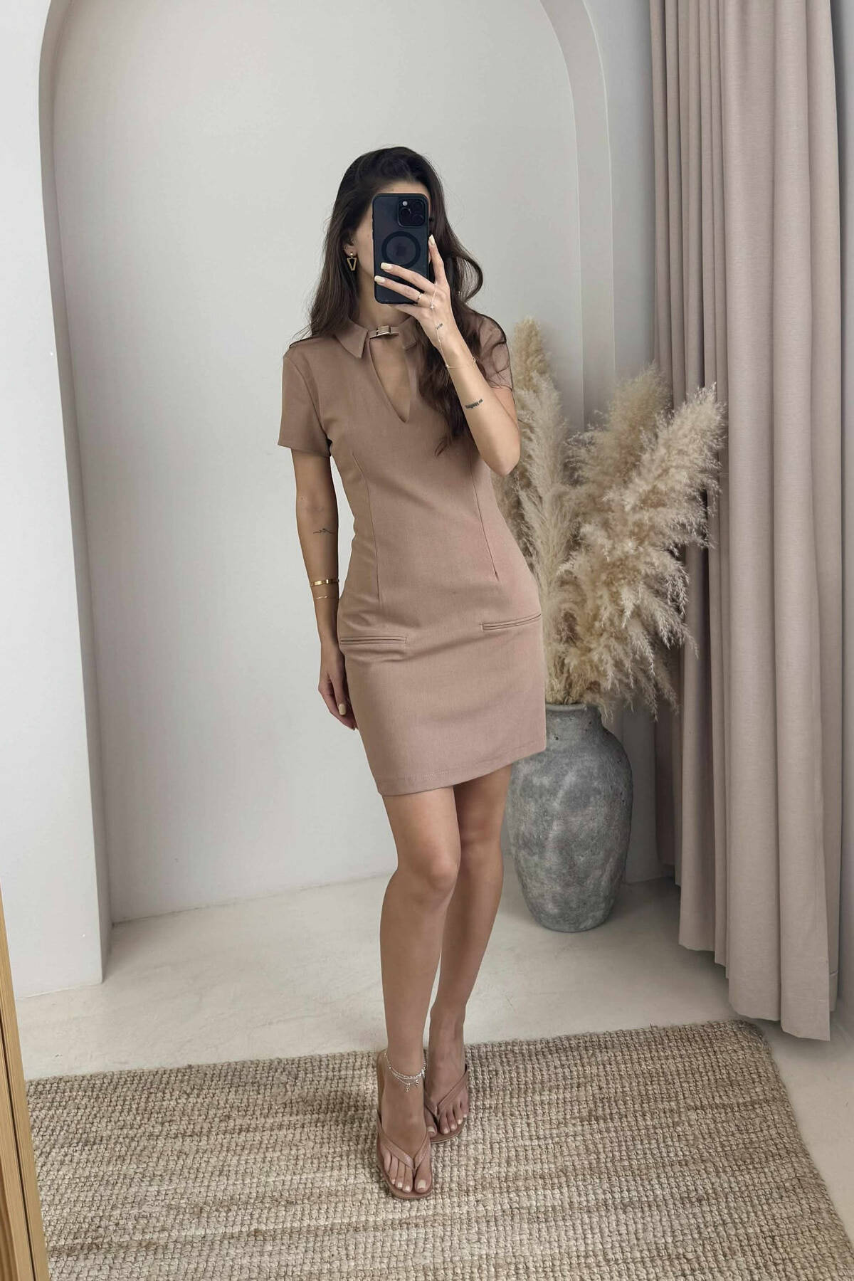 FUSTAN I SHKURTËR NJË NGJYRËSH PËR FEMRA NË NGJYRËN KAFE E ZBARDHUR