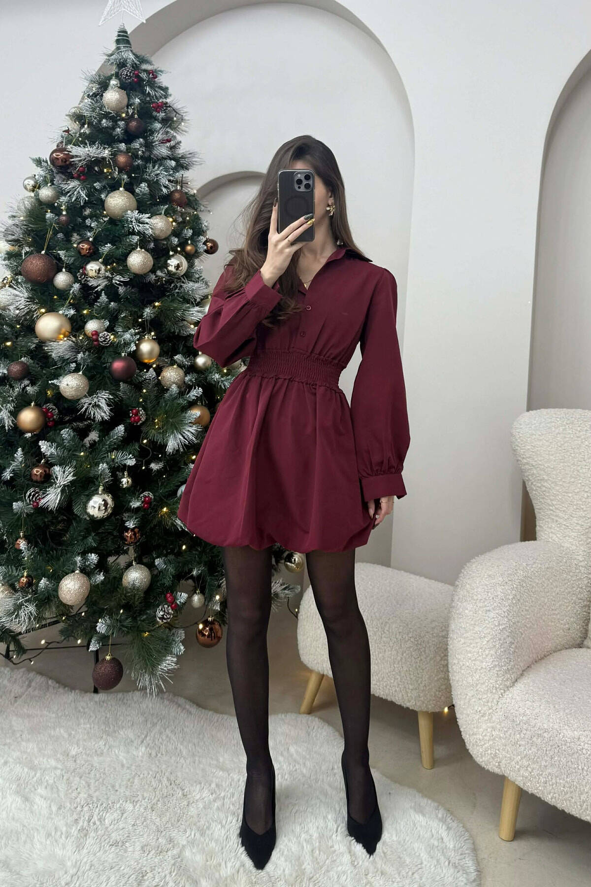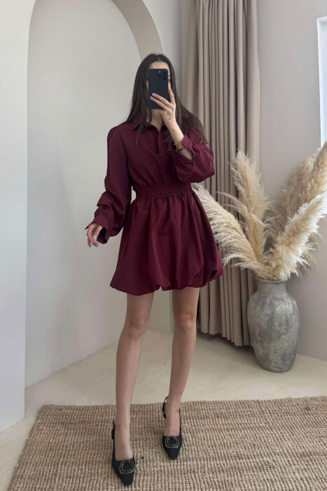 ONE COLOR LONG SLEEVE WOMEN DRESS BURGUNDY/VISHNJE