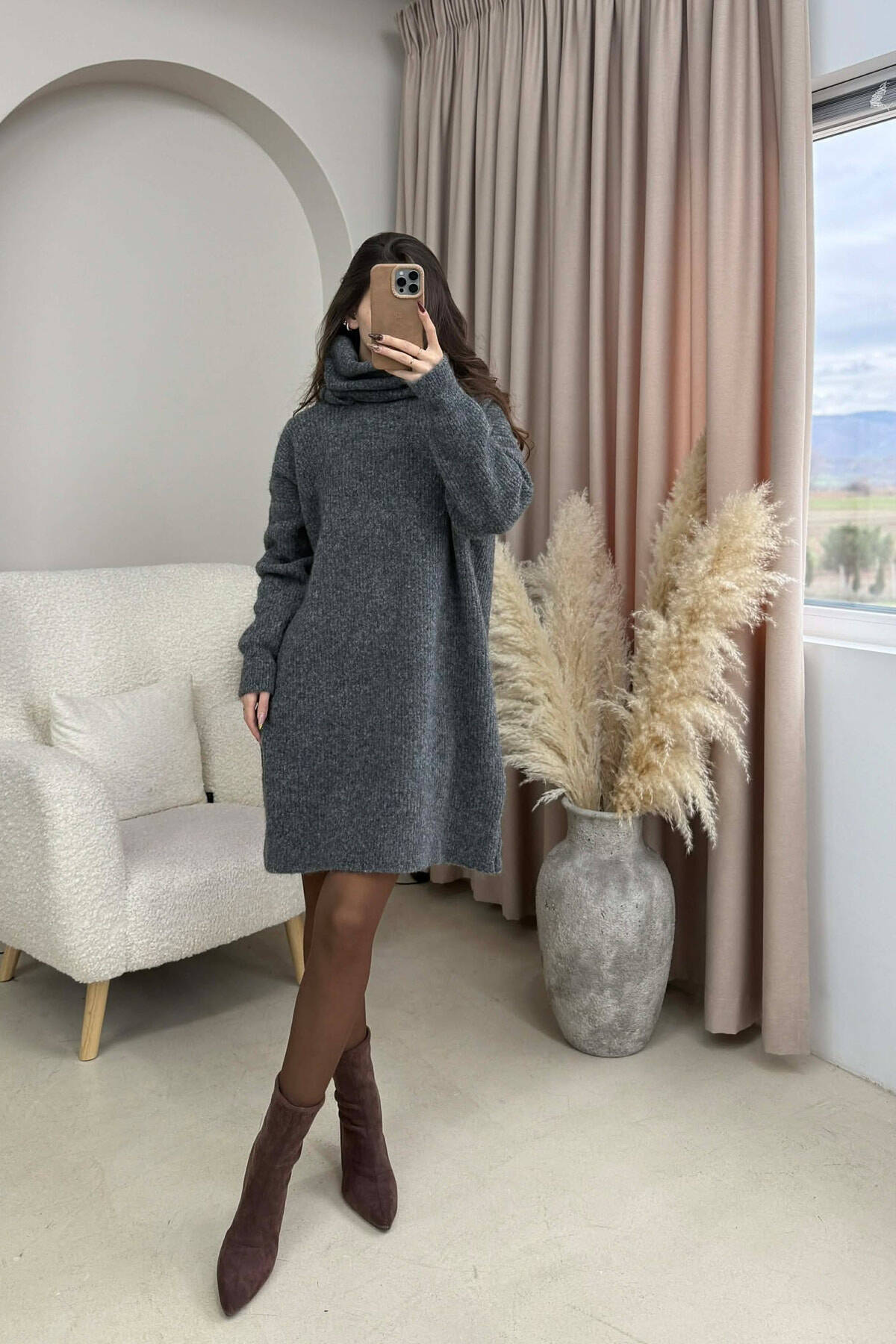 TURTLE NECK ONE COLOR KNIT WOMEN DRESS WHITE-E BARDHE