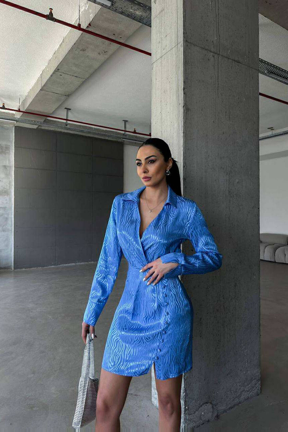 FUSTAN ME DETAJIN E BUTONAVE PËR FEMRA NË NGJYRËN BLU