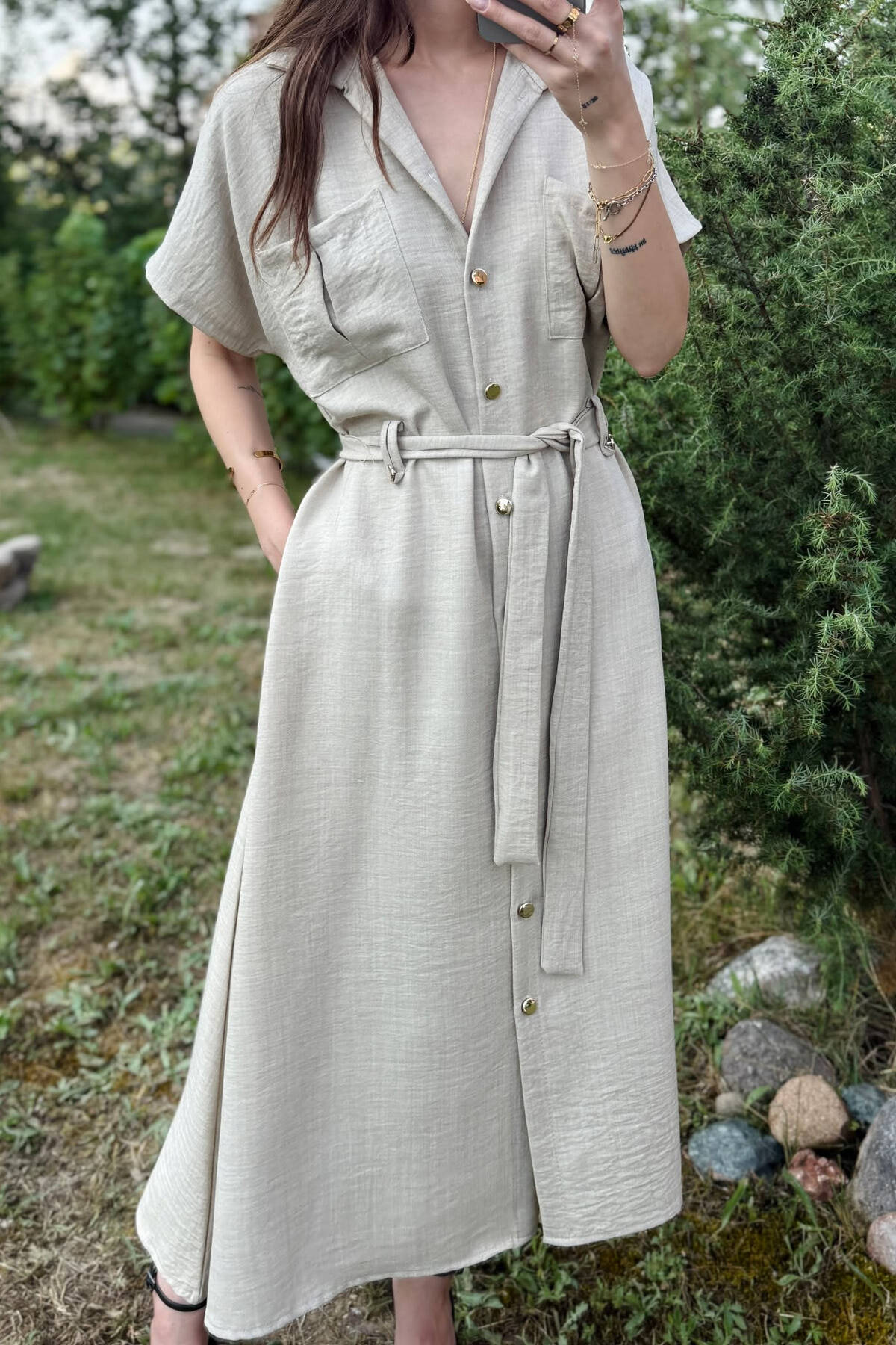 FUSTAN ME DETAJIN E XHEPAVE ME LIDHSE PËR FEMRA NË NGJYRËN BEZHË