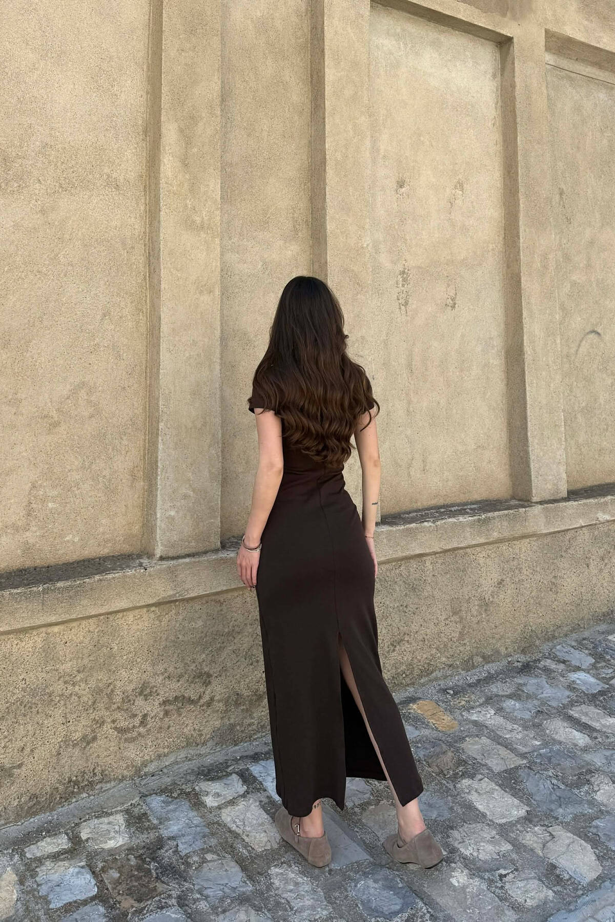 FUSTAN ME DETAJ DANTELLE PER FEMRA NE NGJYRE KAFE