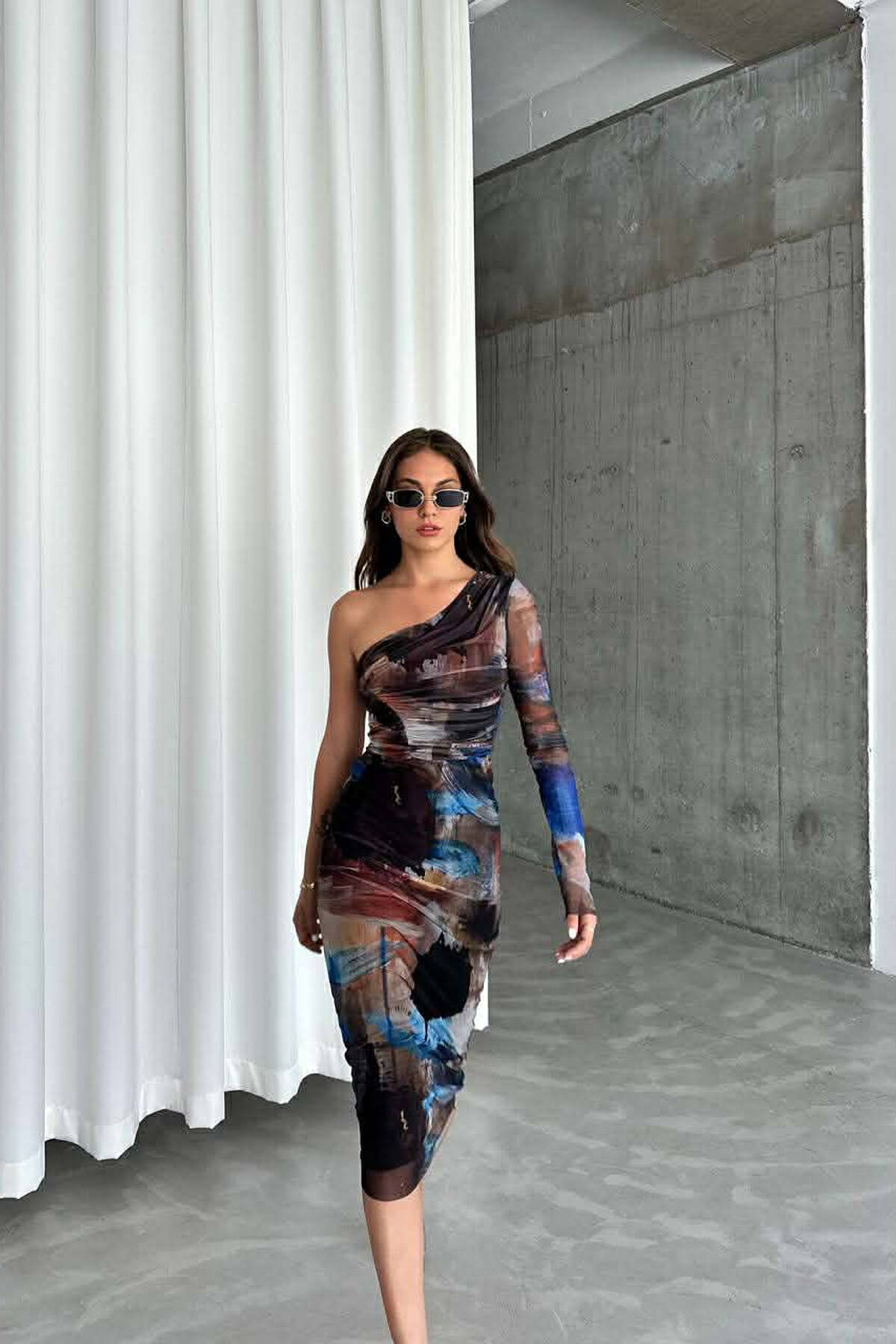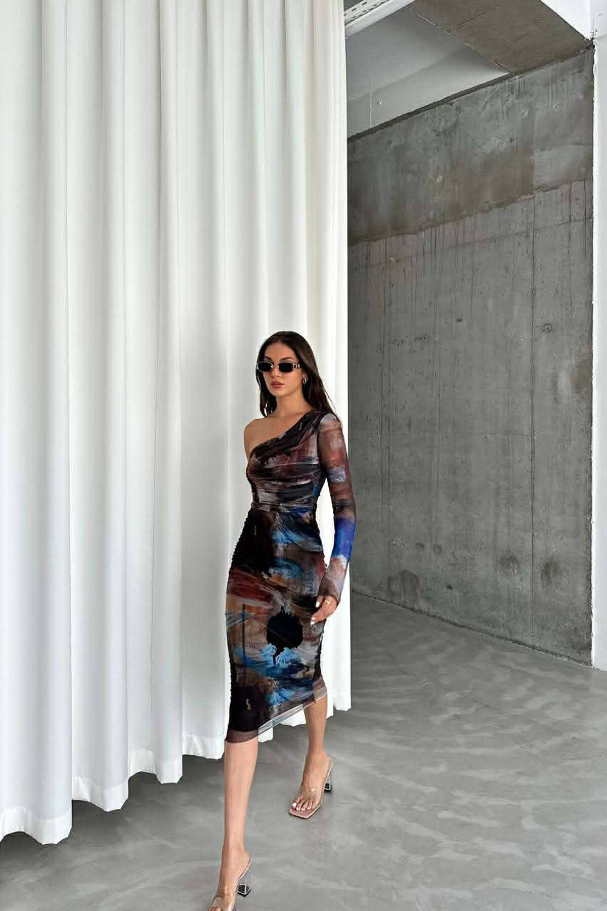 FUSTAN I GJATE NJE NGJYRESH ME DETAJ TYLI PER FEMRA NE NGJYRE KAFE