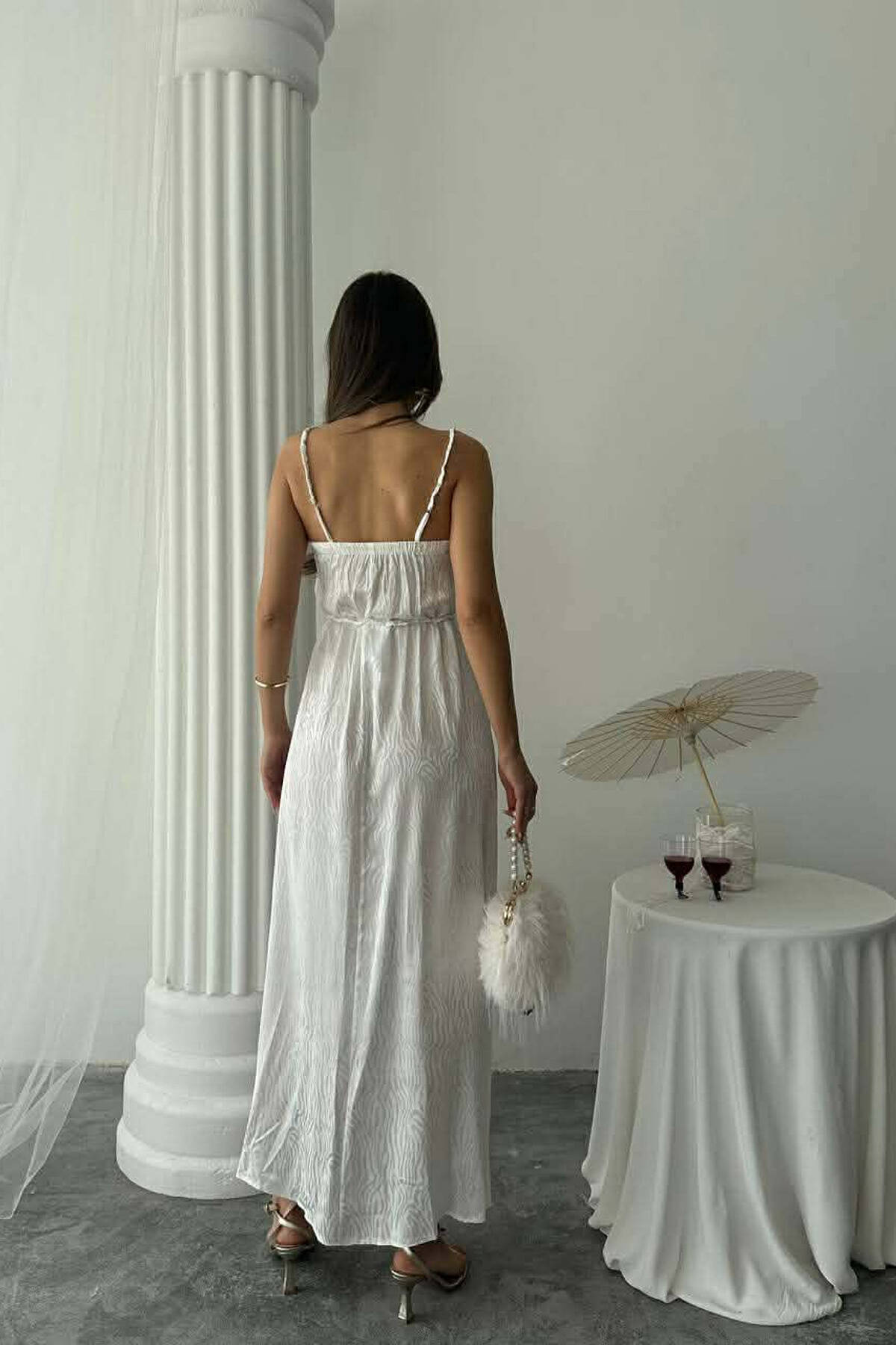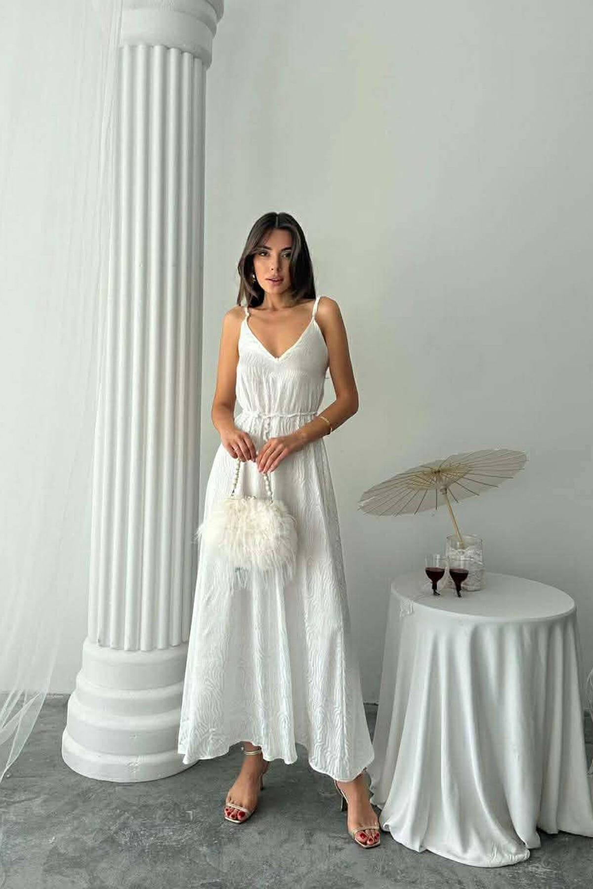 FUSTAN ME RRIPA TE HOLLE DHE ME DETAJIN E LIDHSES PER FEMRA NE NGJYRE TE BARDHE