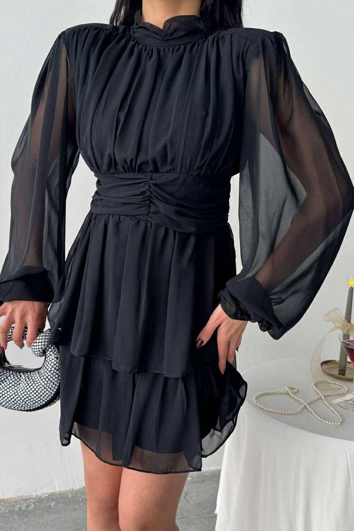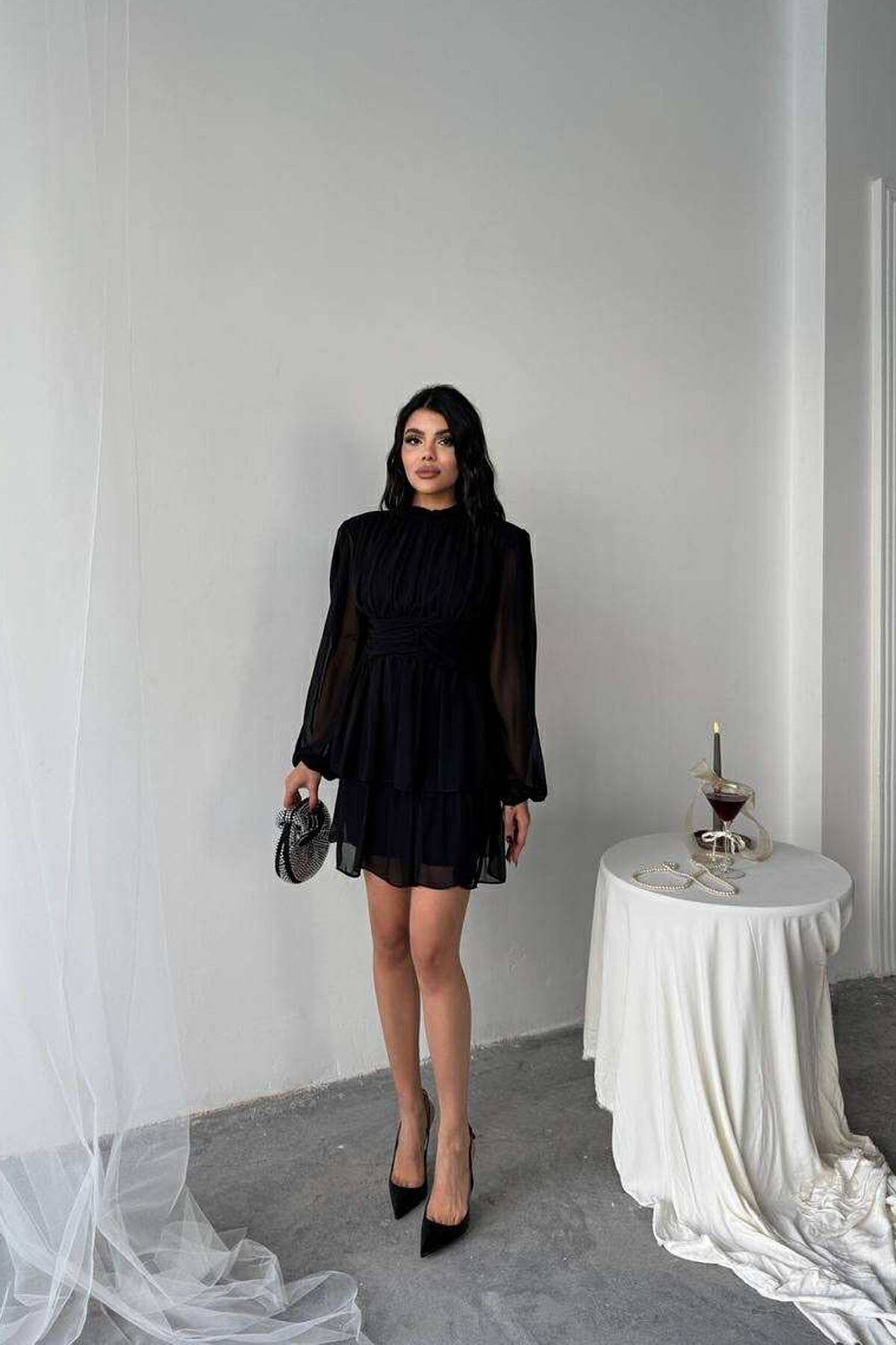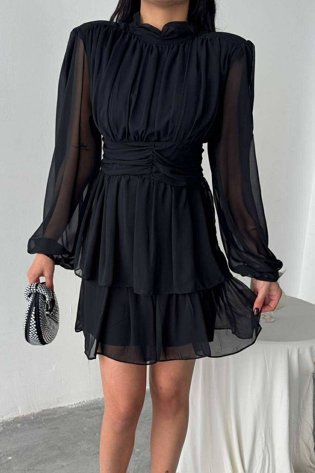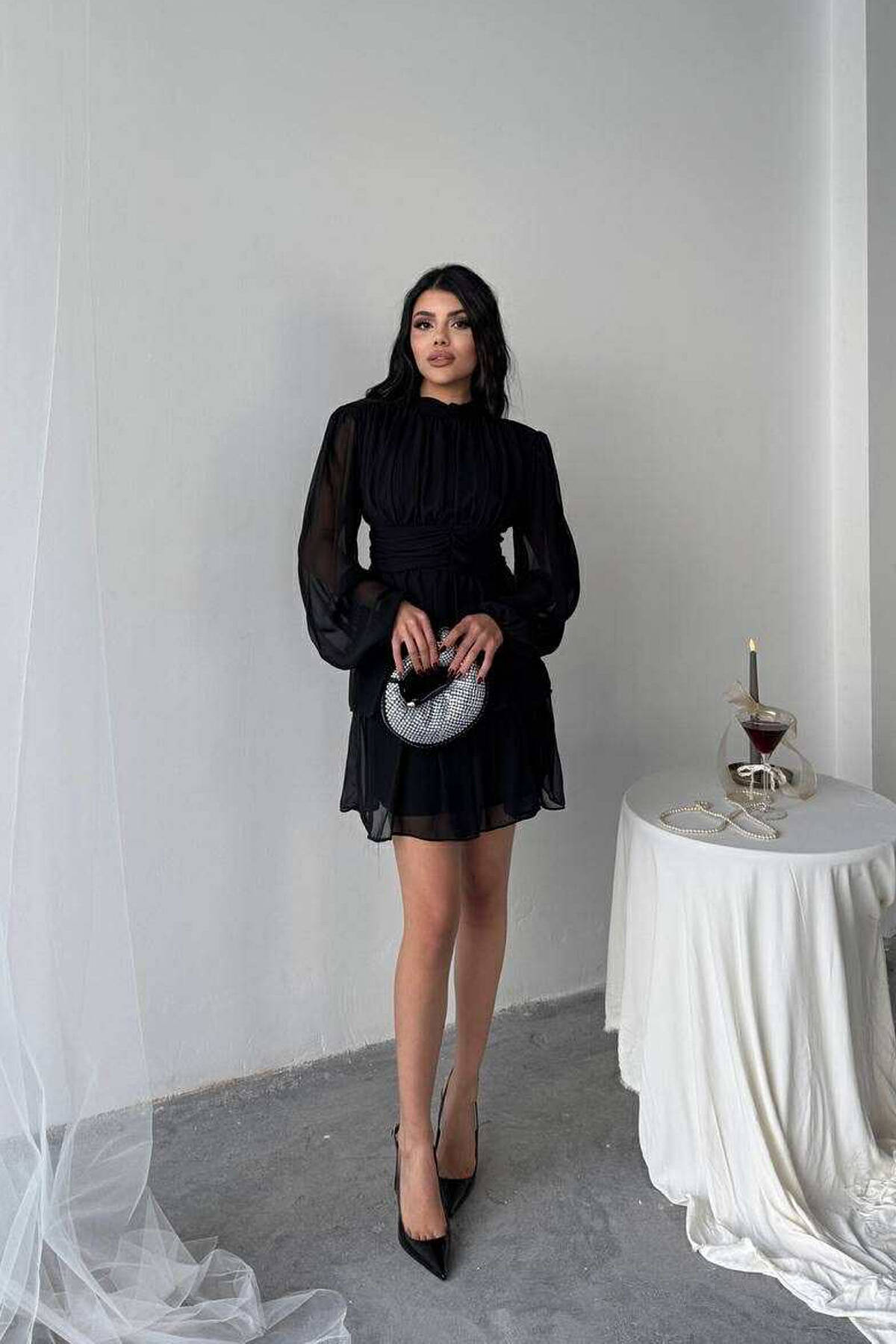 FUSTAN NJË NGJYRËSH ME DIZAJN TYLI PËR FEMRA NË NGJYRË TË ZEZË