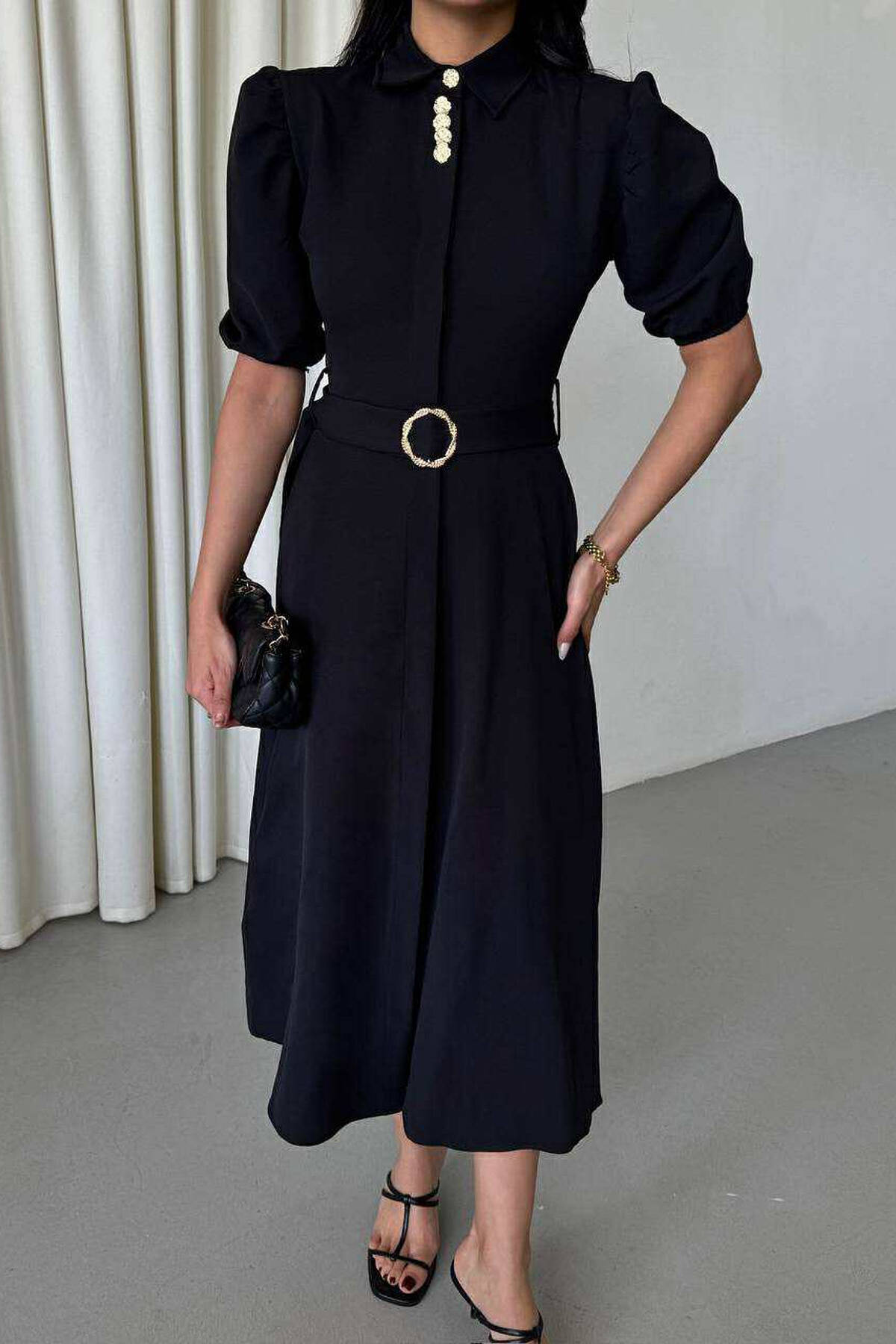 FUSTAN NJË NGJYRËSH ME JAKË POLO DHE LIDHËSE NË BEL PËR FEMRA NË NGJYRËN TË ZEZË