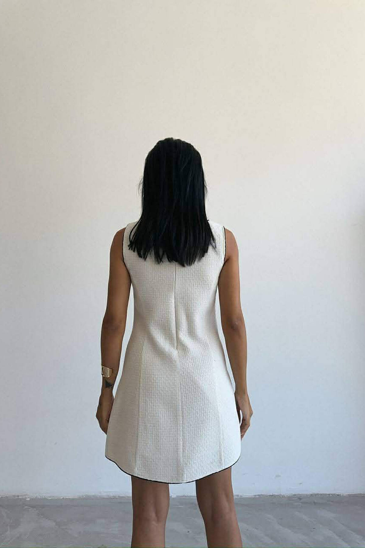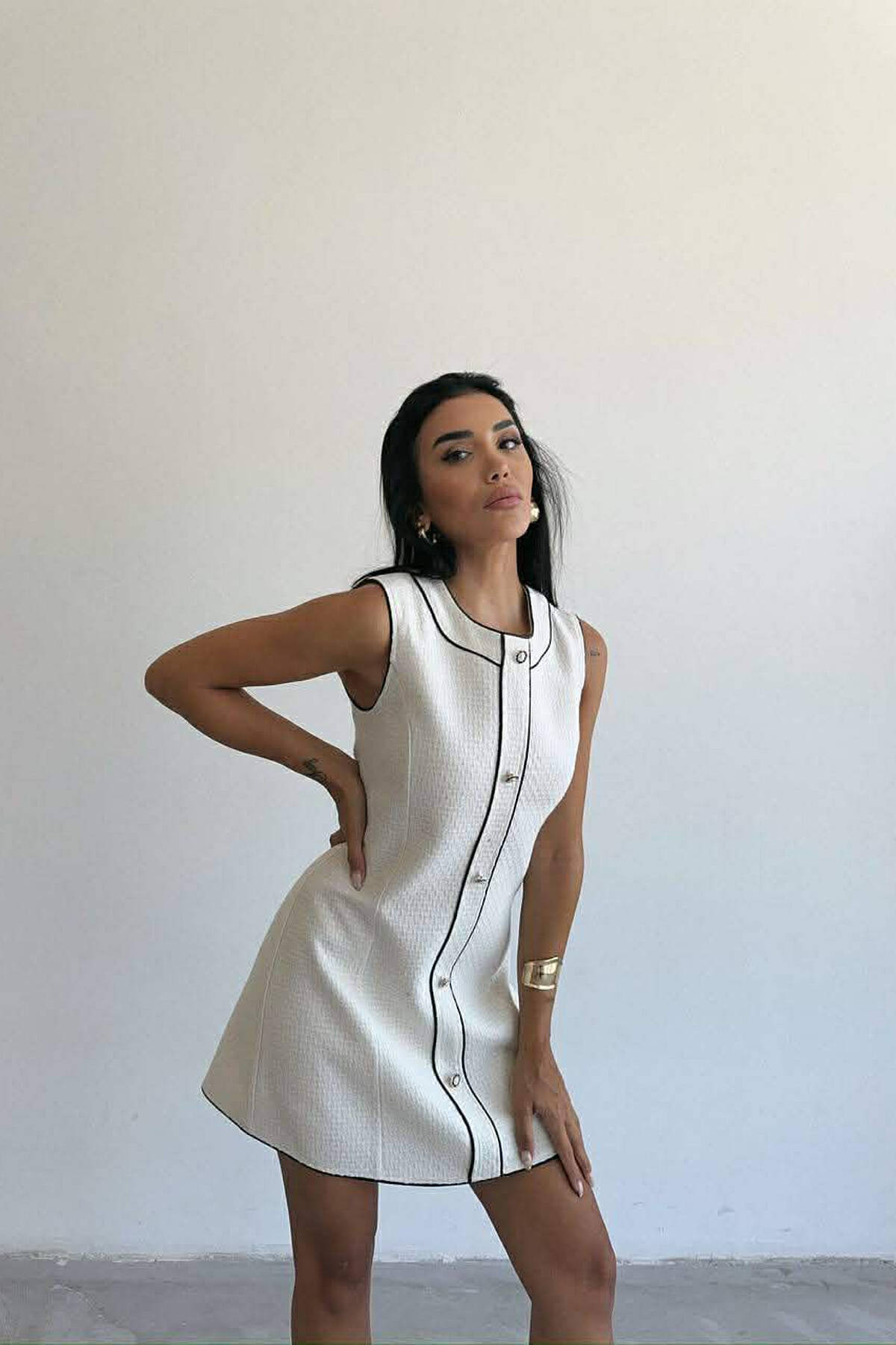 ONE COLOR BUTTONED SHORT WOMEN DRESS WHITE-E BARDHE