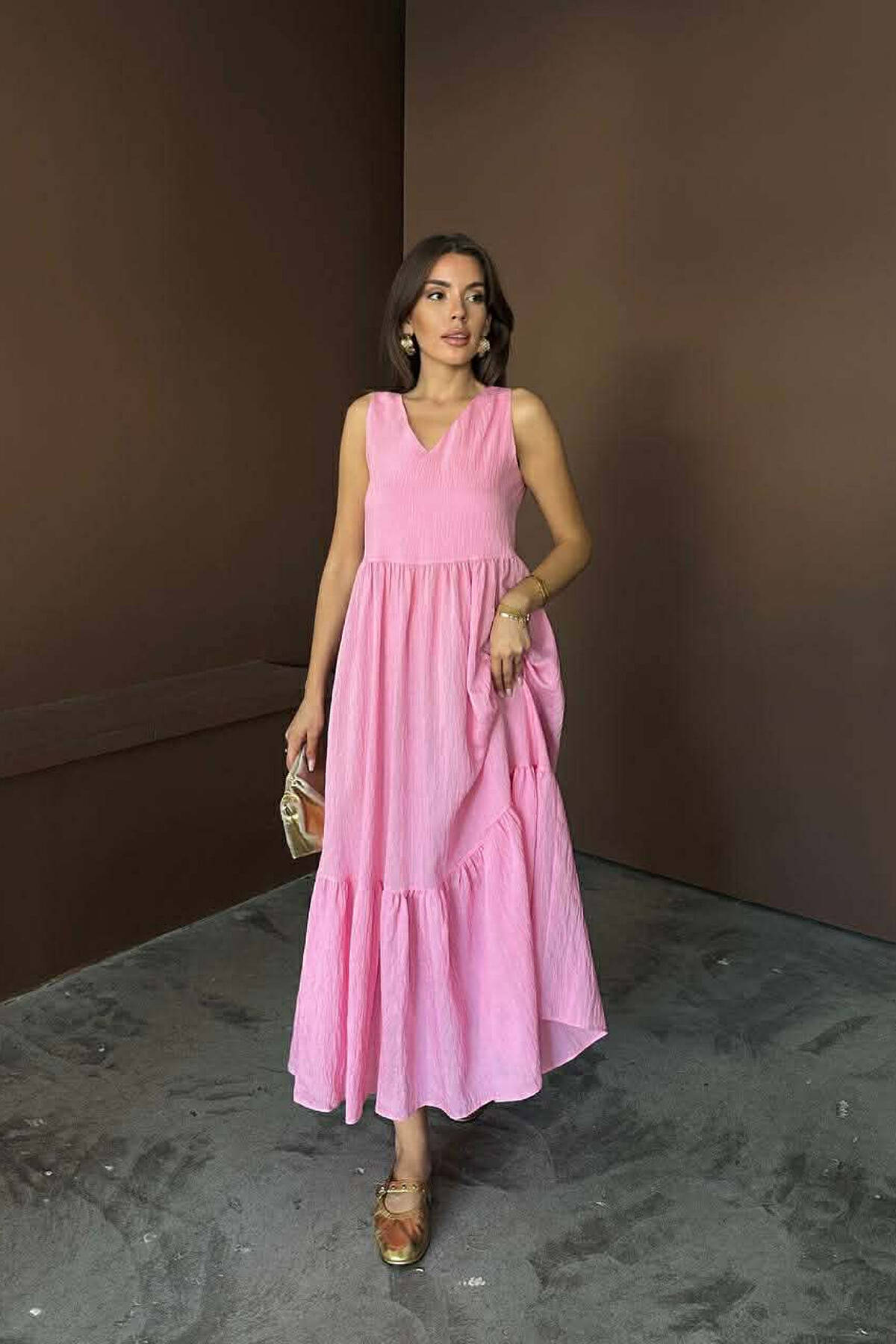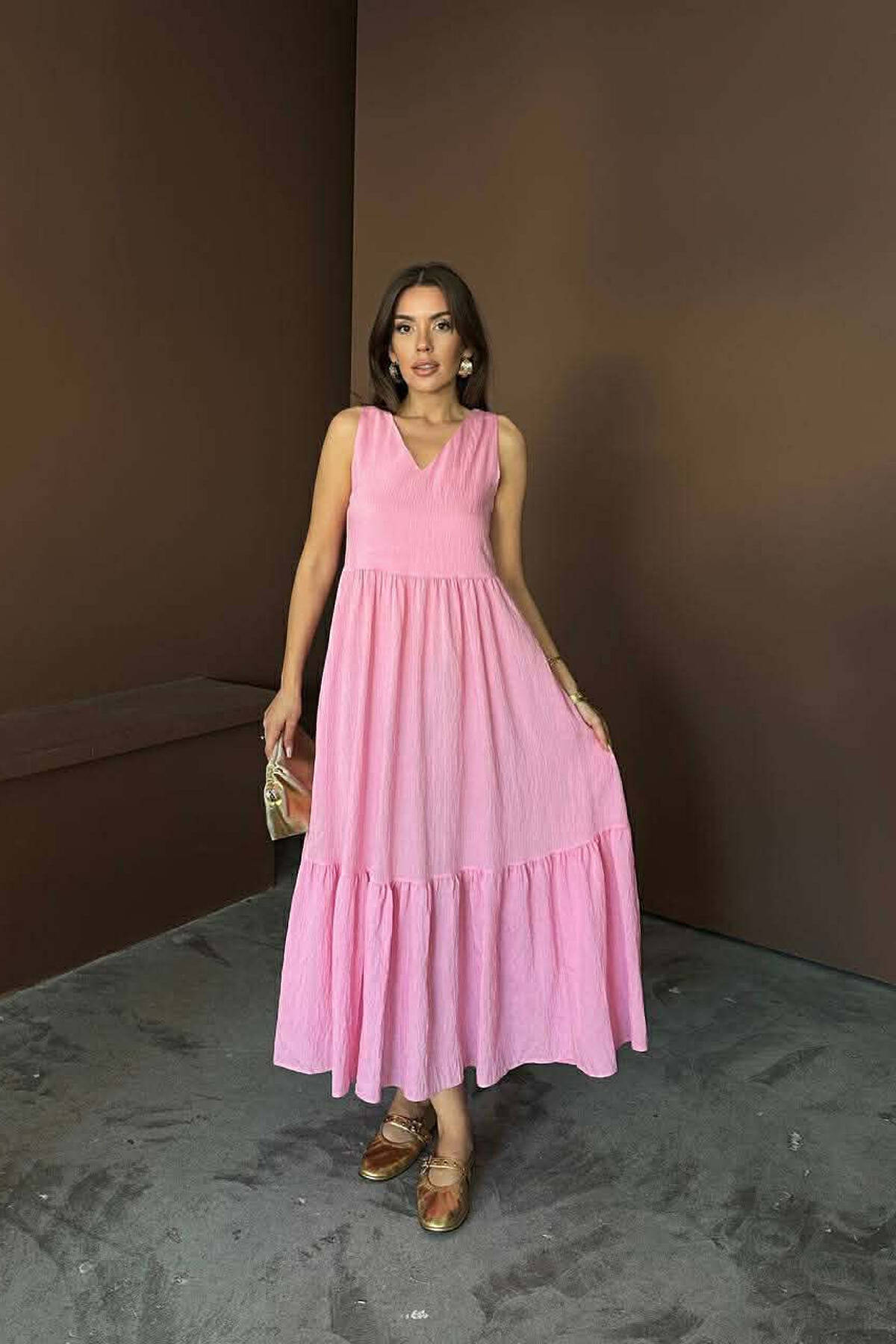 FUSTAN NJE NGJYRESH PA MENGE ME JAKE V PER FEMRA NE NGJYRE ROZE