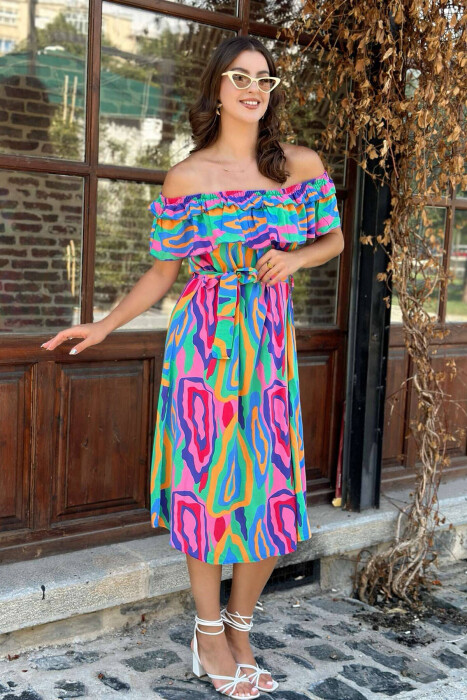 Fustan me një menge , me dizenjo lulesh në të , shume i fresket perfekt per ne vere .