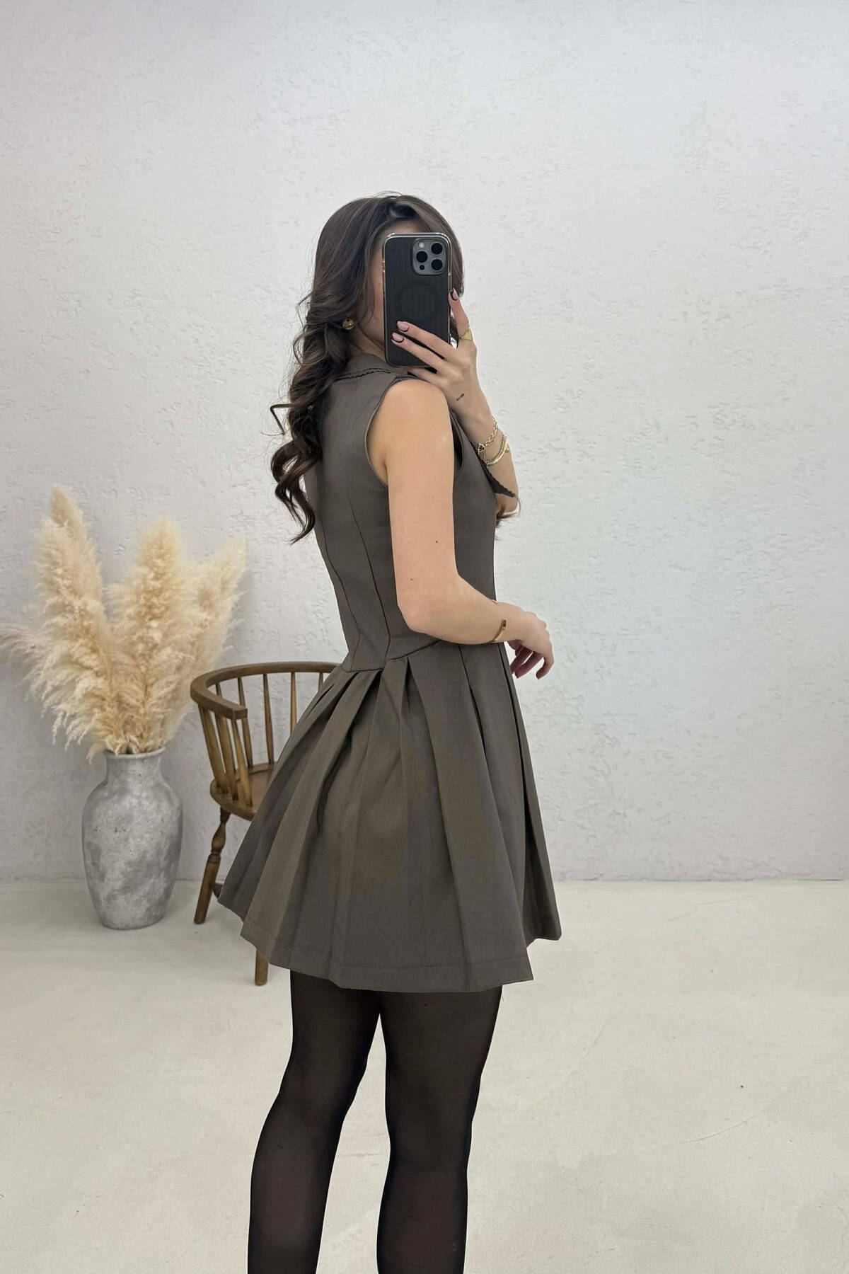 FUSTAN ME MENGE TE GJATA DHE ME DETAJIN E RRIPIT PER FEMRA NE NGJYRE KAFE