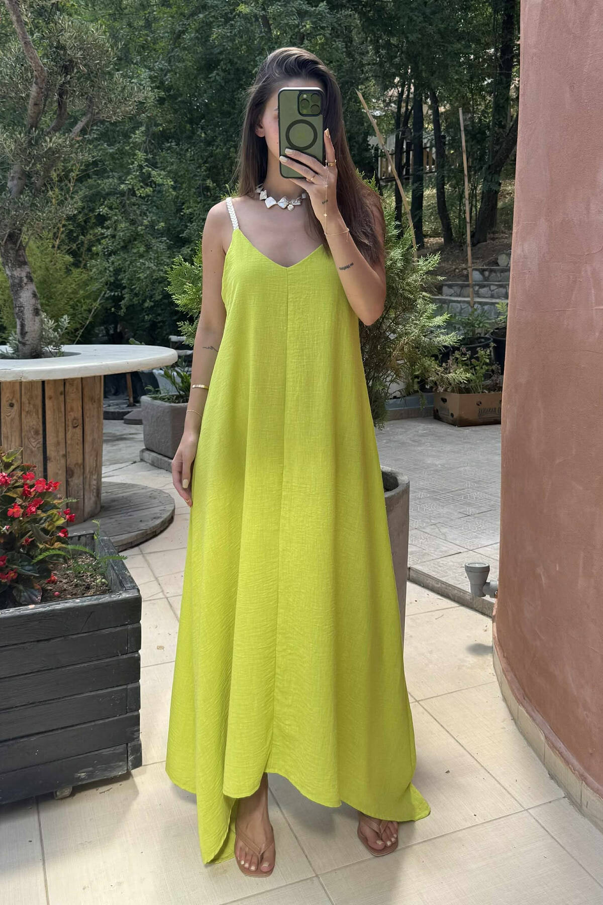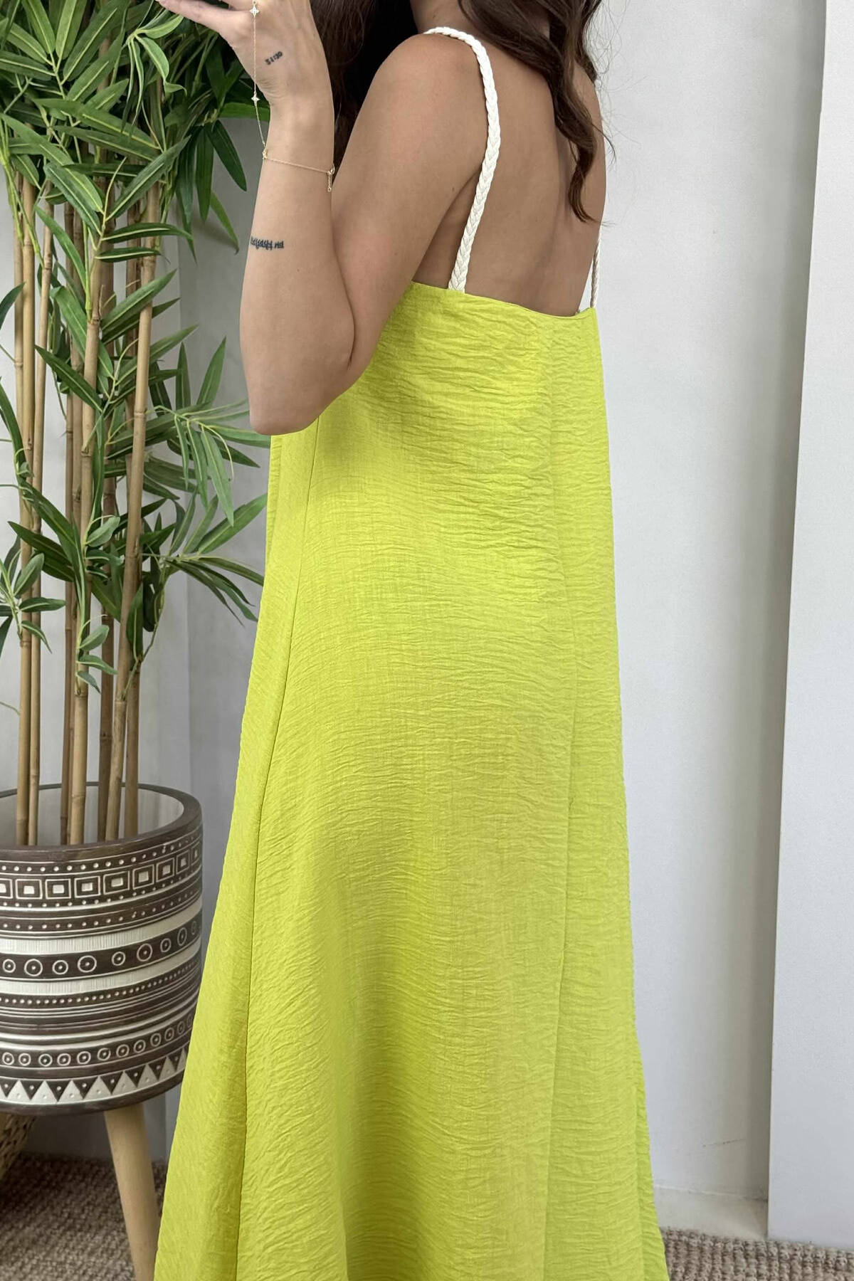 Bejeni tuajin fustanin me detajin e rripave prej litari , me cepa . Ky fustan ju jep stil , elegance dhe komoditet .
