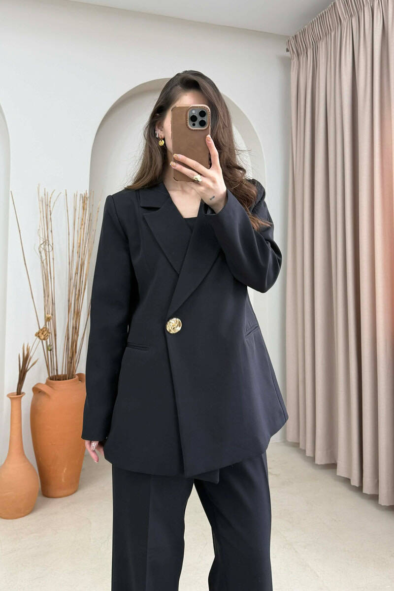 GOLD BUTTON CLASSIC JACKET+ TROUSERS WOMAN SET BLACK/ E ZEZE