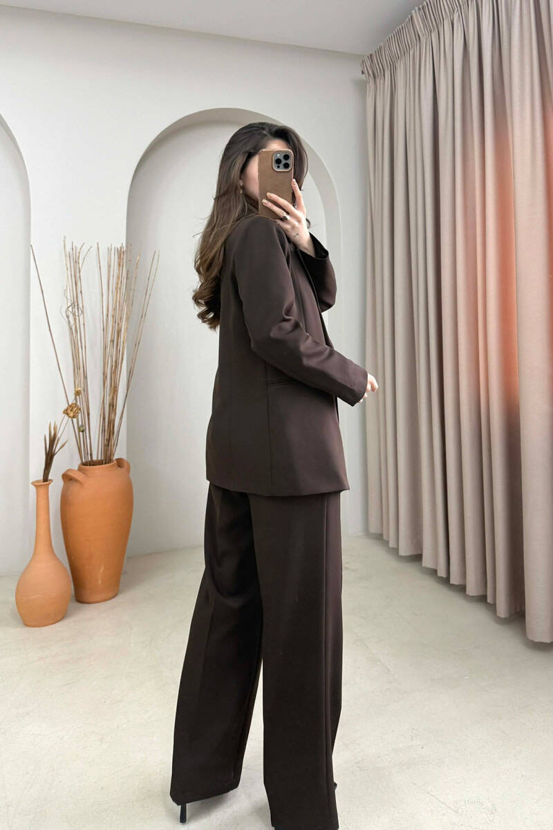 GOLD BUTTON CLASSIC JACKET+ TROUSERS WOMAN SET BROWN/KAFE