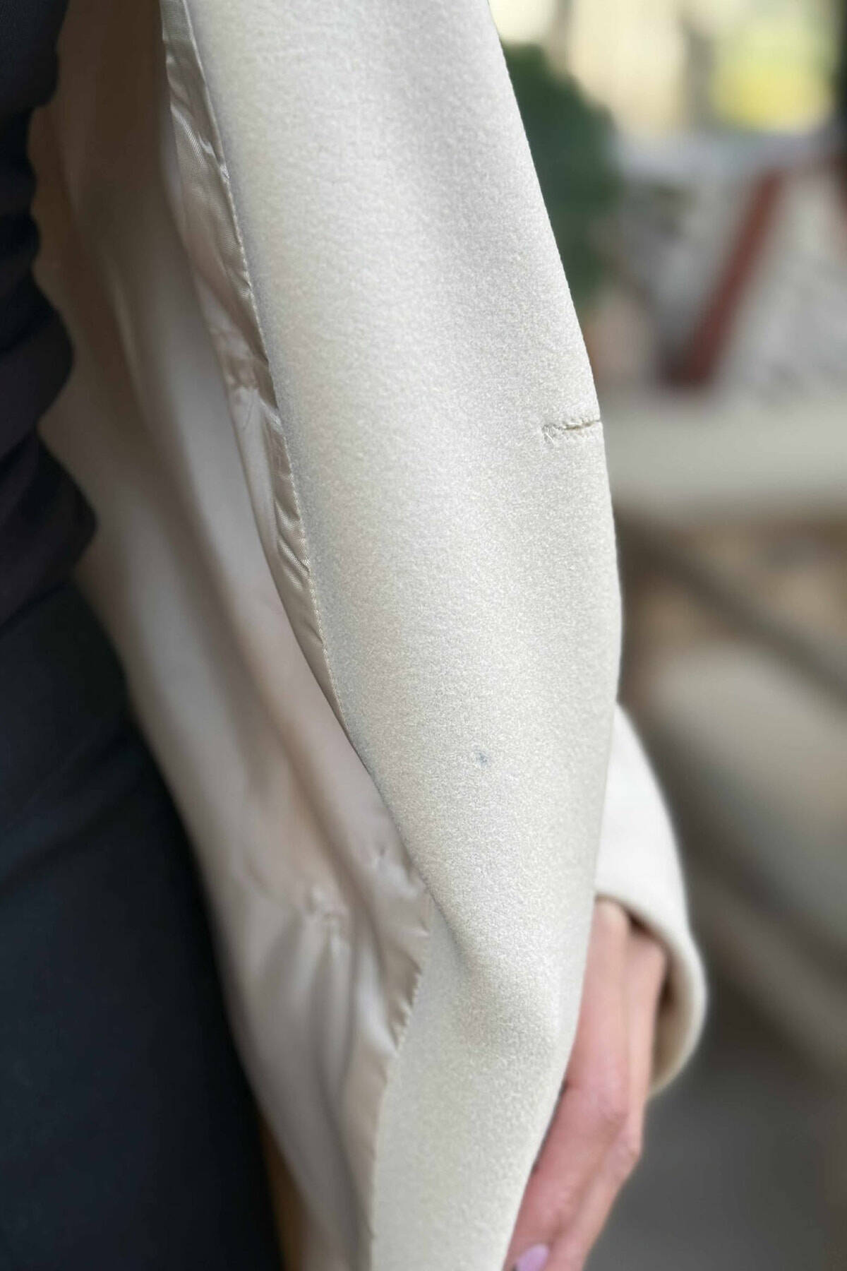 DETACHABLE FAUX FUR COLLAR CROPPED WOMAN COAT CREAM/KREM