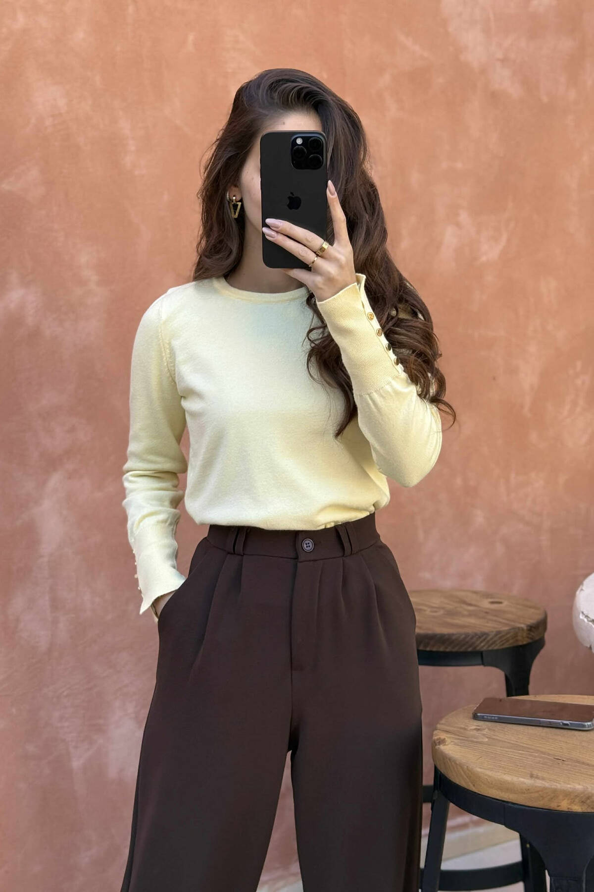 GOLD BUTTONS DETAILS ONE COLOR WOMEN SWEATER YELLOW/E VERDHE