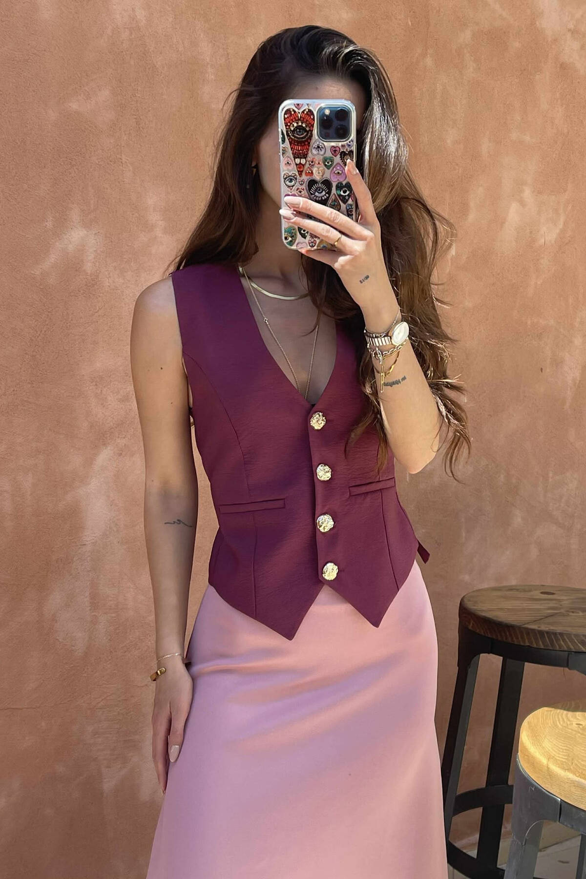 GOLD BUTTONS ONE COLOR WOMEN VEST BURGUNDY/VISHNJE