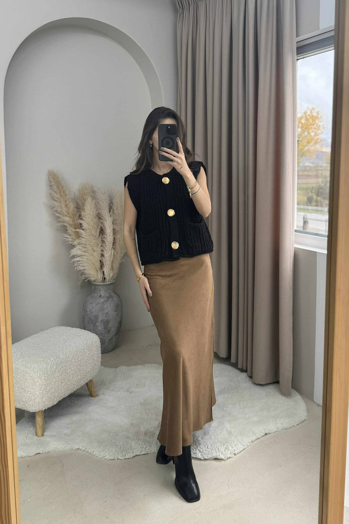 ONE COLOR BUTTONED WOMAN VEST BROWN/KAFE