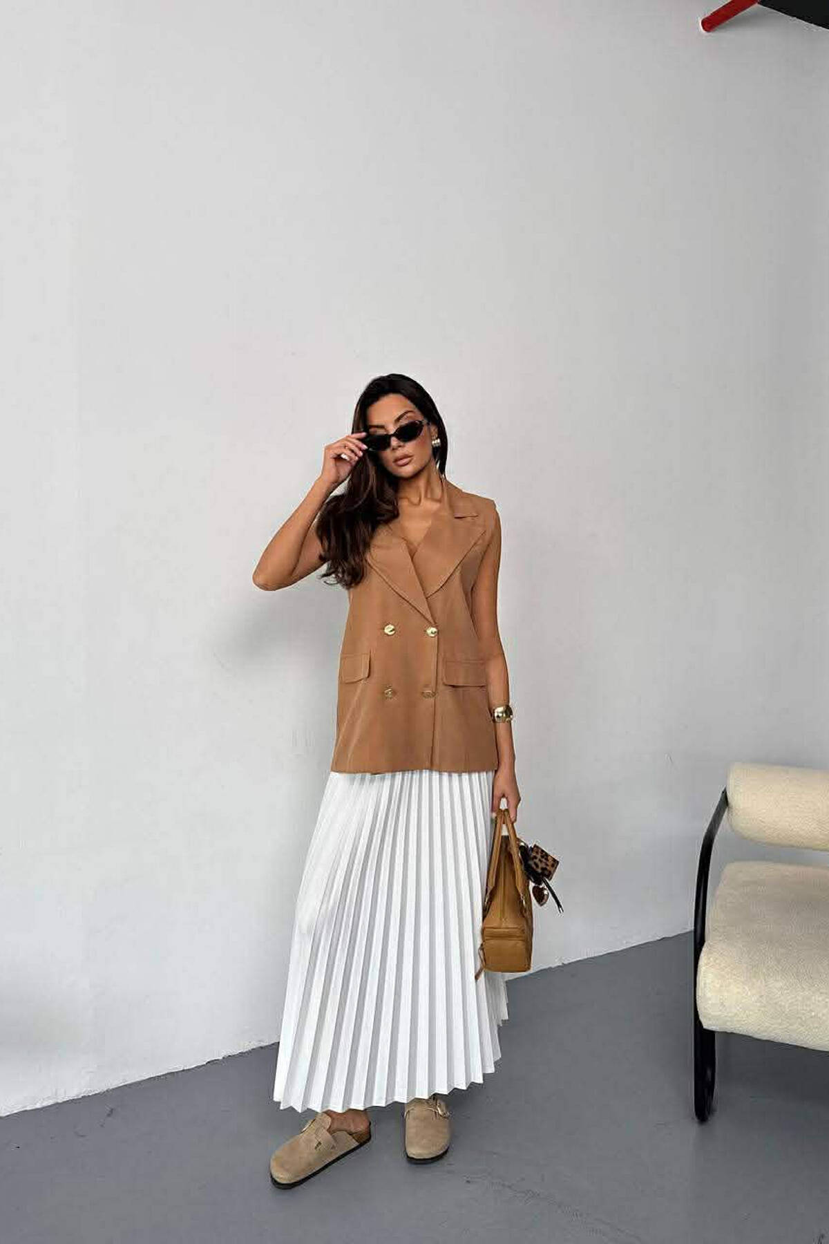 ONE COLOR BUTTONED WOMAN VEST BEIGE/BEZHE