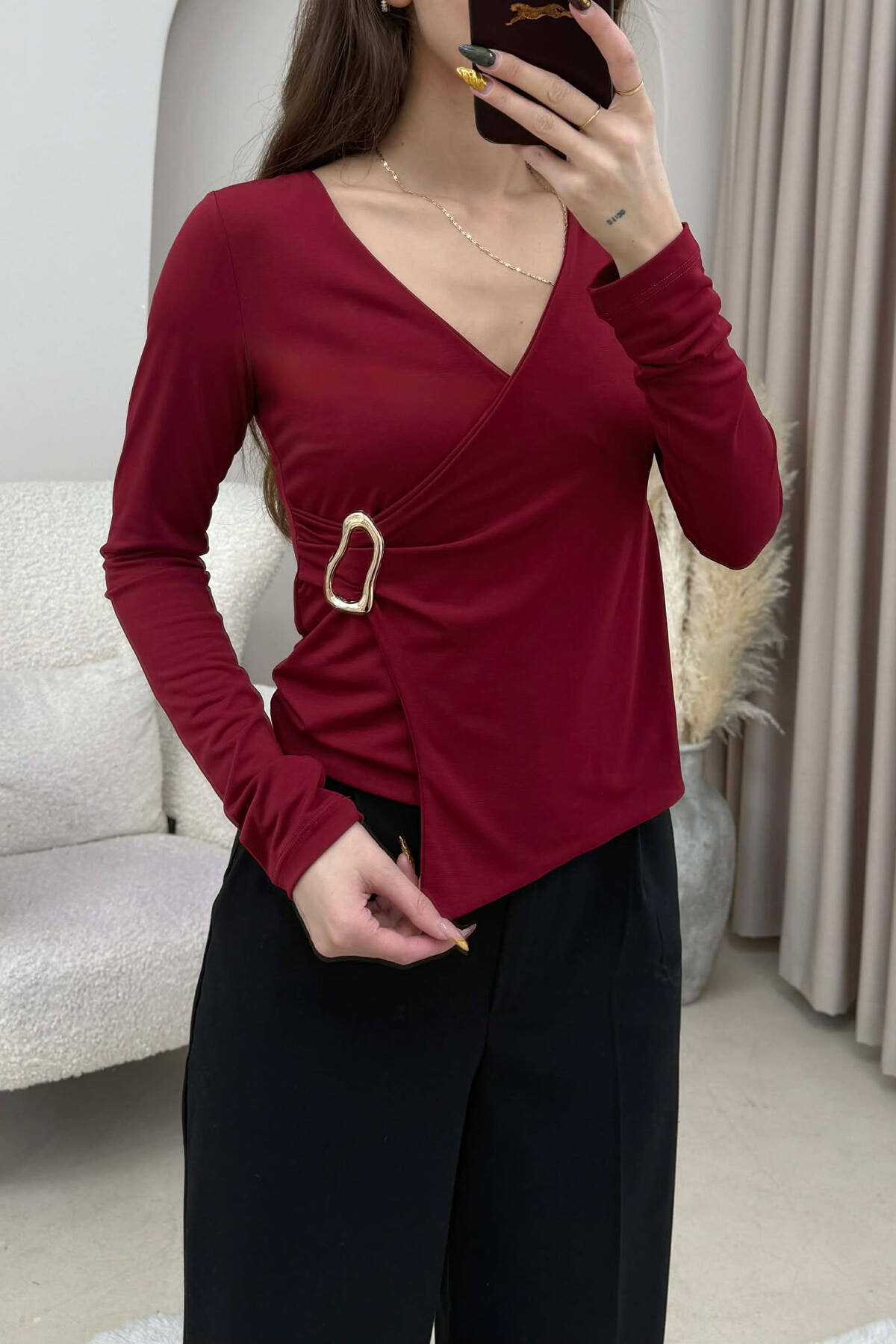 GOLD DETAIL ONE COLOR WOMEN SWEATSHIRT BURGUNDY/VISHNJE